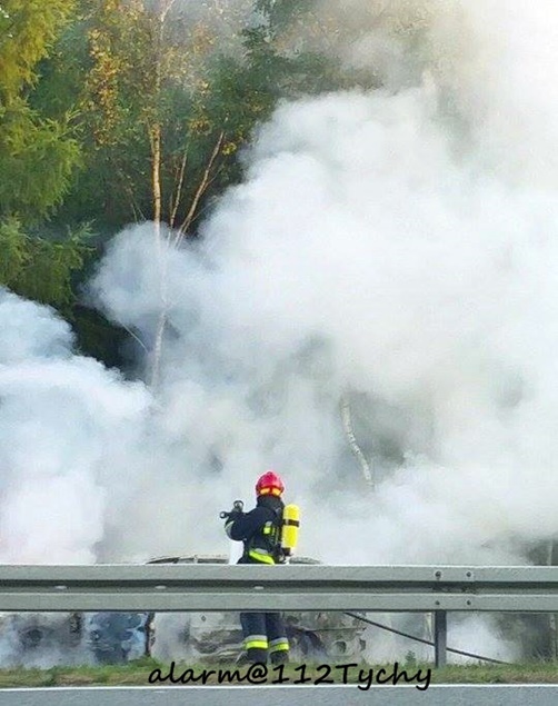 5 października około godziny 17.20 na trasie S 1 w kierunku Mysłowic około 400 metrów za zjazdem na Lędziny doszło do pożaru samochodu osobowego. Na miejsce natychmiast wysłane zostały zastępy z JRG Mysłowice (GCBA) oraz do pomocy OSP Imielin (GBA) i JRG Tychy (GBA). Po dotarciu na miejsce strażacy zastali palący się samochód osobowy i przystąpili do jego gaszenia. Ze względu na duże zadymienie strażacy pracowali w aparatach ochrony dróg oddechowych. Celem ugaszenia pożaru został podany prądy piany. Na czas gaszenia pożaru ruch na tym odcinku drogi został wstrzymany przez przybyły patrol Policji. Działania trwały około godziny. Prawdopodobną przyczyną pożaru było zwarcie instalacji elektrycznej. Po zakończonych działaniach gaśniczych strażacy z JRG Tychy i OSP Imielin uprzątnęli jezdnię i udali się do usuwania plamy oleju w Tychach.