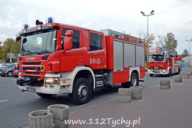 9 października przed godziną 17 do dyżurnego MSK w Tychach wpłynął sygnał z centrali pożarowej w markecie LECLERC przy ulicy Budowlanych. Na miejsce wysłane zostały trzy zastępy z JRG Tychy (GBAPr, GCBA, SD). Po dotarciu na miejsce okazało się, że w markecie prowadzone są prace remontowo – budowlane. Pracownicy nieostrożnie wykonywali swoje prace i wzbudzili alarm pożarowy. Po sprawdzeniu budynku i okolicznych hydrantów działania zostały zakończone.