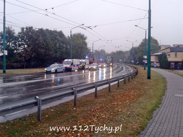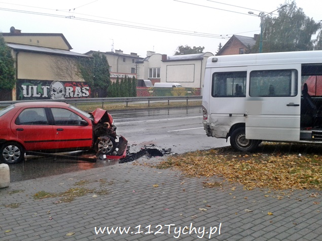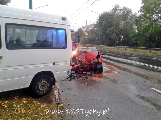 12 października około godziny 7.20 dyżurny MSK w Tychach otrzymał zgłoszenie o zdarzeniu drogowym na alei Piłsudskiego w okolicy skrzyżowania z ulicą Paprocańską. Na miejsce wysłane zostały trzy zastępy z JRG Tychy (GBA, GCBA, SCRt), patrole WRD Policji i ZRM. Po dotarciu na miejsce ratownicy zastali dwa rozbite pojazdy na pasie w kierunku centrum miasta: Mercedes (bus) i Fiat Siena. Dwie osoby podróżujące busem i kierujący Fiatem zostały zabrane do szpitala. Działania strażaków na miejscu zdarzenia polegały na jego zabezpieczeniu, odłączeniu akumulatorów w rozbitych pojazdach, neutralizacji rozlanych płynów przy użyciu sorbentu. Na miejsce wezwany został również policyjny technik. Z ustaleń policjantów wynika, ze kierujący busem nie zapanował nad swoim pojazdem, wpadł w poślizg i zjechał na przeciwległy pas doprowadzając do zderzenia z osobówką. Po wykonaniu wszystkich czynności przez funkcjonariuszy Policji, pojazdy zostały usunięte z drogi, a strażacy uprzątnęli pas drogowy. Zdarzenie zostało zakwalifikowane jako wypadek. Dalsze czynności w tej sprawie prowadzą tyscy policanci.