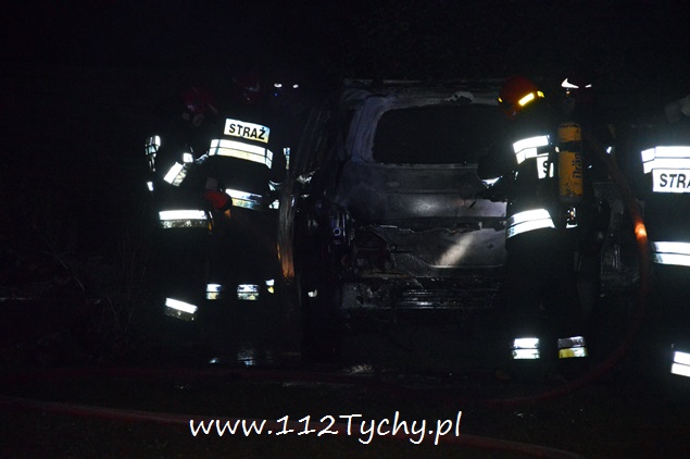 14 października około godziny 21.15 do dyżurnego MSK w Tychach wpłynęło zgłoszenie o pożarze samochodu na terenie prywatnej posesji przy ulicy Leśnej w Tychach. Na miejsce natychmiast wysłane zostały dwa zastępy z JRG Tychy (GBA, GCBA) i patrol Policji. Po dotarciu na miejsce strażacy zastali samochód Ssang Young w całości objęty ogniem. Podane zostały dwa prądy wody. Ze względy na duże zadymienie strażacy pracowali w aparatach ochrony dróg oddechowych. Po około trzydziestu minutach pożar został opanowany i ugaszony. Teren działań został zabezpieczony. Na czas działań ruch na ulicy Leśnej w miejscu pożaru został wstrzymany. Na miejscu była obecna właścicielka pojazdu. W związku z niewyjaśnioną przyczyną pożaru samochodu na miejsce wezwana została policyjna grupa dochodzeniowo – śledcza. Po około czterdziestu minutach strażacy zakończyli swoje działania i wrócili do koszar. Dalsze czynności mające na celu wyjaśnienie przyczyn tego pożaru prowadzą tyscy policjanci.
