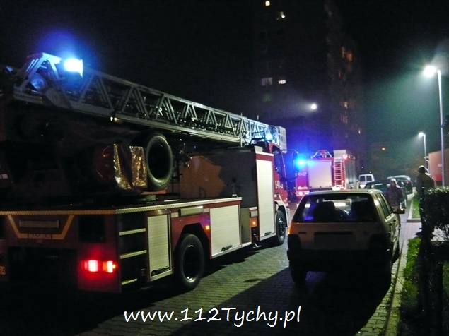 22 października po godzinie 19 do MSK w Tychach wpłynęło zgłoszenie o zadymieniu na jedenastym piętrze w budynku wielorodzinnym przy ulicy Rodakowskiego. Na miejsce wysłane zostały trzy zastępy z JRG Tychy (GBA, GCBA, SD). Po dotarciu na miejsce strażacy udali się na ostatnie piętro gdzie nie znaleźli źródła pożaru i zadymienia. Po dotarciu na ostatnie pietro okazało się, że z tego pietra można przejść do klatki obok. Tam po sprawdzeniu okazało się, że pomiędzy pierwszym, a drugim piętrem są nadpalone drzwi do pomieszczenia zsypowego. Zostały one już ugaszone przez lokatorów, jednak strażacy podjęli decyzje o konieczności ich przelania przy użyciu hydronetki. Z uzyskanych informacji wynikało, że nie był to pierwszy pożar tych drzwi. W związku z tym na miejsce wezwany został patrol Policji. Po około czterdziestu minutach działania zostały zakończone i zastępy wróciły do koszar.