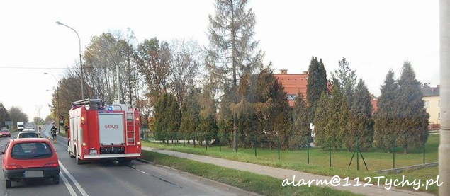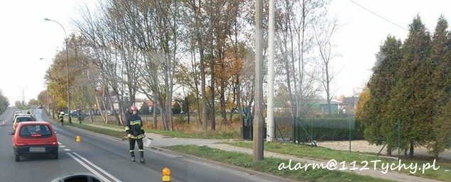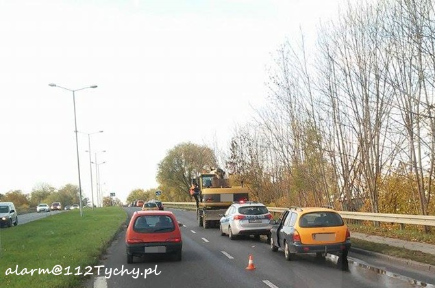 26 października około godziny 13 patrol WRD KMP Tychy zatrzymał na ulicy Mikołowskiej koparkę, z której wyciekał olej. Plama ciągnęła się kilkadziesiąt metrów. Na miejsce wezwany został zastęp strażaków z JRG Tychy (GBA). O zdarzeniu poinformowany została również firma, do której należy maszyna budowlana. Jej przedstawiciel również dotarł na miejsce. Strażacy przy użyciu Sorbentu i Sintanu zneutralizowali plamę. Utrudnienia występowały na pasie w kierunku Mikołowa. W trakcie wykonywania czynności na pasie w stronę browaru doszło do małego karambolu. Wzięły w nim udział cztery samochody, co spowodowało zakorkowanie się ulicy Mikołowskiej już w obu kierunkach. Policjanci po zakończeniu czynności z koparką podjęli karambol. Sprawa zakończyła się mandatem dla jego sprawcy, który najprawdopodobniej zagapił się. Utrudnienia trwały około dwóch godzin.