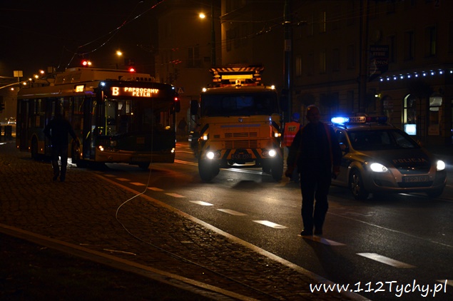 3 listopada około godziny 18.25 dyżurny KMP Tychy otrzymał zgłoszenie o zerwanym drucie jezdnym sieci trolejbusowej na ulicy Budowlanych przy Sądzie Rejonowym, który zagraża w ruchu drogowym. Na miejsce wysłany został patrol drogówki. Powiadomione zostało również pogotowie techniczne TLT. Przybyły patrol drogówki potwierdził zgłoszenie, zabezpieczył miejsce zdarzenia i podjął ręczna regulacje ruchu. Niestety nadal kierujący samochodami nie potrafią stosować się do wydawanych poleceń. Ręczna regulacja ruchu była podjęta na odcinku ulicy Budowlanych pomiędzy skrzyżowaniami z ulicą Begonii – Bocheńskiego do Bałuckiego. Po kilkunastu minutach na miejsce dojechał pogotowie techniczne. Jego pracownicy podjęli się usunięcia usterki. Po około czterdziestu minutach usterka została usunięta i ruch został w pełni przywrócony. Była to kolejna od momentu przeprowadzenia rok temu modernizacji sieci awaria.