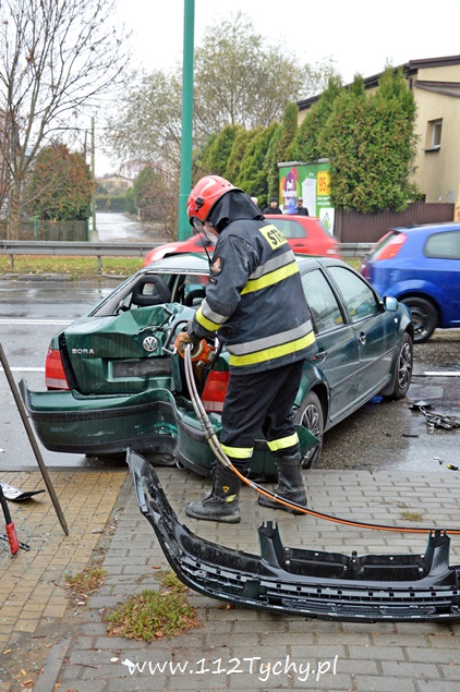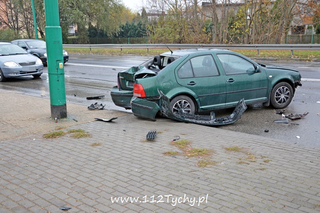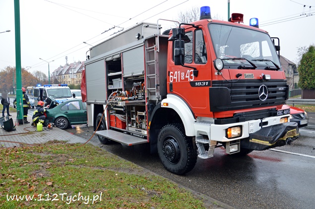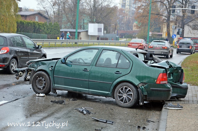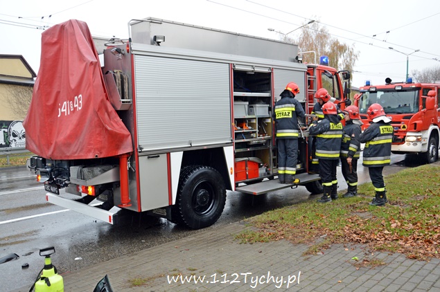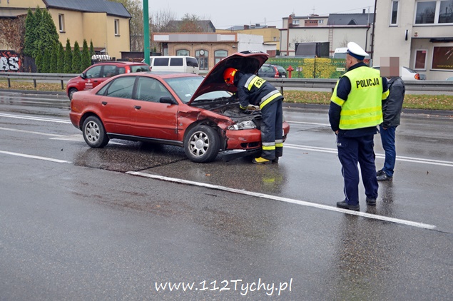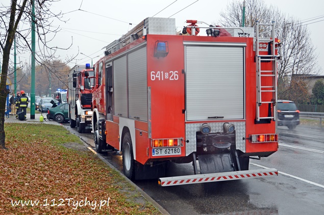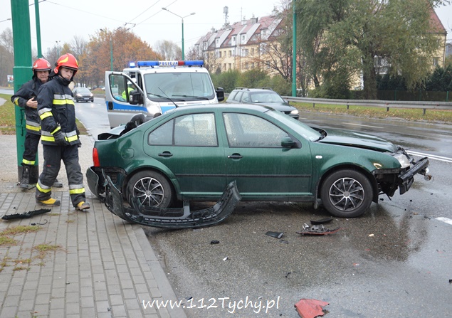 7 listopada około godziny 11.40 na alei Piłsudskiego w pobliżu skrzyżowania z ulicą Paprocańską doszło do zderzenia dwóch samochodów osobowych. W zdarzeniu brały udział Audi i VW. Kierująca VW kobieta po zderzeniu z Audi tyłem swojego samochodu z dużą sił uderzyła w słup trakcji trolejbusowej. Na miejsce zdarzenia zadysponowany został patrol drogówki i dwa zastępy z JRG Tychy (GCBA, SCRt). Nikomu z podróżujących samochodami nic się nie stało ( w tym dwójce dzieci jadących VW). Działania strażaków na miejscu polegały zabezpieczeniu miejsca zdarzenia, odłączeniu akumulatorów w rozbitych pojazdach, zabezpieczeniu instalacji LPG (VW) i neutralizacji płynów eksploatacyjnych. Po wykonaniu dokumentacji ze zdarzenia przez policjantów, pojazdy zostały odholowane przez pomoc drogową, a strażacy uprzątnęli jezdnię. Przez blisko godzinę ruch w miejscu zdarzenia był nieznacznie utrudniony. Policjanci wyjaśniają przyczyny i okoliczności tego zdarzenia.