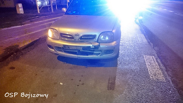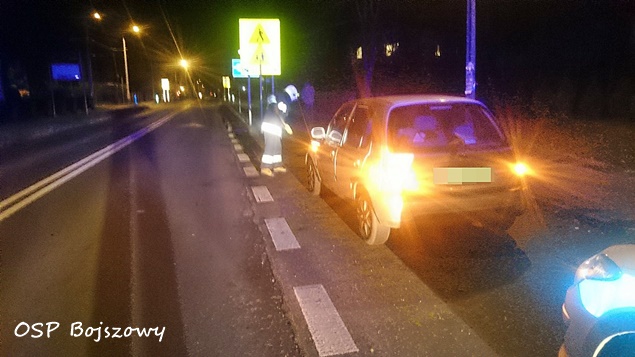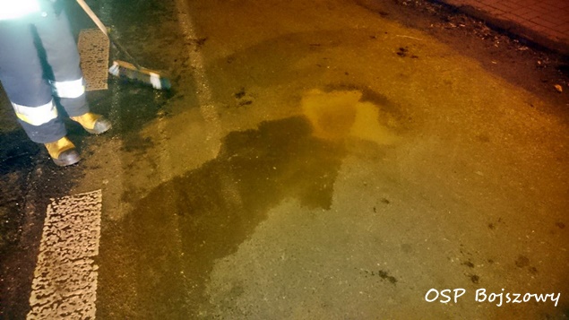 10 listopada około godziny 21:30 do MSK w Tychach wpłynęło zgłoszenie o kolizji drogowej w Bojszowach na ul. Gościnnej. Na miejsce wysłane zostały dwa zastępy strażaków Po jednym zastępie z OSP Bojszowy (GBA) i JRG Tychy (GBA). Po dotarciu we wskazane miejsce okazało się, że doszło do zderzenia samochodu z psem, w wyniku którego z auta wyciekał płyn chłodniczy. Na miejscu był już patrol policji. Po kilkunastu minutach plama została zneutralizowana .