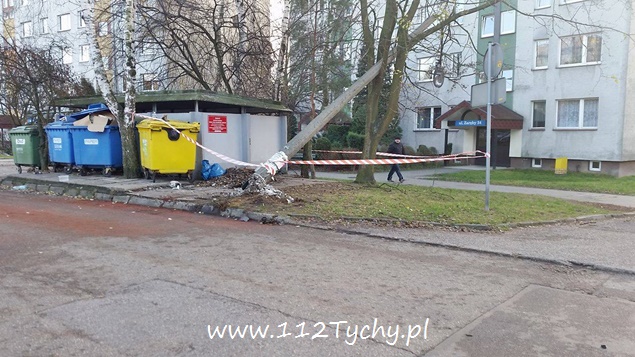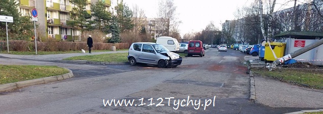 5 grudnia około godziny 4 nad ranem dyżurny KMP Tychy otrzymał zgłoszenie o zdarzeniu drogowym na ulicy Zaręby, gdzie kierujący samochodem Fiat Seicento miał uderzyć w latarnię uliczną. Na miejsce wysłany został jeden z podległych patroli. Dodatkowo o zdarzeniu poinformowane zostało pogotowie ratunkowe i tyska straż pożarna. Po dotarciu na miejsce zgłoszenie zostało potwierdzone. Kierującego pojazdem jednak nie było na miejscu – zbiegł przed przyjazdem służb. Ze względu na uszkodzenie słupa oświetleniowego na miejsce wezwane zostało również pogotowie energetyczne (słup został zlamany). Działania strażaków polegały na odłączeniu akumulatora w rozbitym pojeździe oraz neutralizacji rozlanych płynów eksploatacyjnych. Dodatkowo zabezpieczony został słup oświetleniowy, który wsparł się na pobliskim drzewie. Policjanci poszukują osoby, która poruszała się tym pojazdem a energetyka ma usunąć uszkodzony słup. Trwa policyjne dochodzenie w tej sprawie.