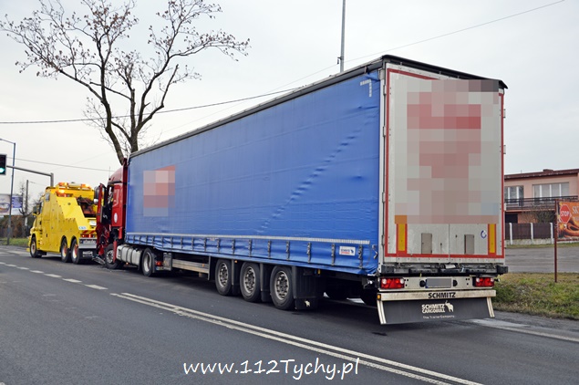 18 grudnia około godziny 14 na ulicy Oświęcimskiej doszło do kolizji dwóch samochodów ciężarowych. Doszło do klasycznego najechania. W wyniku zdarzenia nikomu nic się nie stało. Uszkodzony został ciągnik siodłowy oraz poprzedzająca naczepa. Na miejsce wezwany został jeden z patrol tyskiej drogówki. Na czas usuwania uszkodzonych pojazdów na tym odcinku został wprowadzony ruch wahadłowy, kierowany przez Policjantów. Policjanci wyjaśniają przyczyny i okoliczności tego zdarzenia.