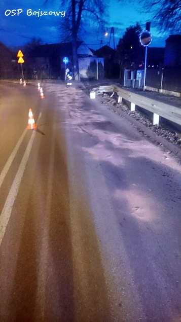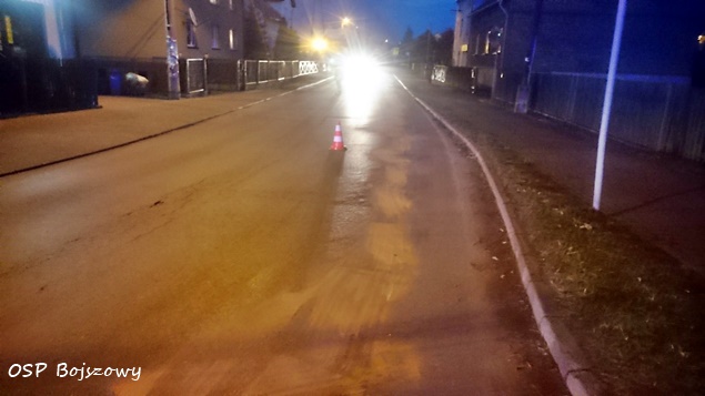 25 grudnia około godziny 16:05 do MSK w Tychach wpłynęło zgłoszenie o plamie oleju na ulicy Gaikowej w Bojszowach. Na miejsce wysłane zostały dwa zastępy strażaków: jeden z OSP Bojszowy (GBA) i jeden z JRG Tychy (GBA) . Po dotarciu we wskazane miejsce okazało się, że plama jest na odcinku ponad 100 m. Dodatkowo na miejsce wezwany został patrol policji z KPP w Bieruniu. Strażacy przy użyciu sorbentu zneutralizowali plamę. Po około godzinie działania zostały zakończone.