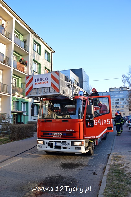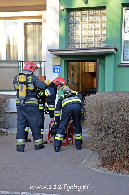 31 grudnia około godziny 14.25 do MSK w Tychach wpłynęło zgłoszenie o zadymieniu na klatce schodowej w budynku wielorodzinnym przy al. Niepodległości 104. Dym miał się wydobywać z jednego z mieszkań na drugim piętrze. Na miejsce zadysponowany został pluton gaśniczy z JRG Tychy (GBA, GBA, GCBA, SD) i patrol Policji. Po dotarciu na miejsce i rozpoznaniu sytuacji została podjęta decyzja o jak najszybszym wejściu do wskazanego mieszkania. W tym celu sprawiona została drabina mechaniczna. Strażacy weszli do mieszkania przez uchylone okno balkonowe. W mieszkaniu nikogo nie zastali poza pozostawionym na piecu… mięsem. To właśnie potrawa była przyczyną zadymienia. Dodatkowo strażacy przewietrzyli klatkę schodową oraz mieszkanie. Po około trzydziestu minutach działania zostały zakończone i zastępy wróciły do koszar.
