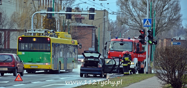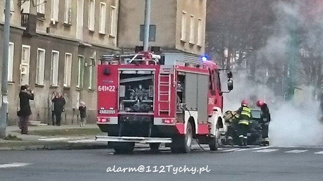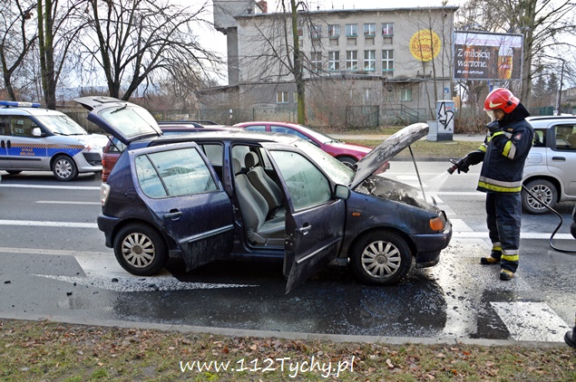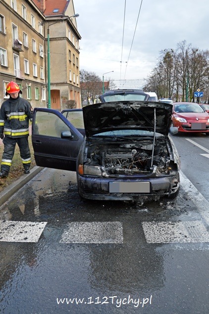 13 stycznia około godziny 14.20 do MSK w Tychach wpłynęło zgłoszenie o pożarze samochodu osobowego na ulicy Budowlanych przy skrzyżowaniu z ulicą Burschego. Na miejsce wysłany został jeden zastęp z JRG Tychy (GBA) i patrol Policji. Po dotarciu na miejsce strażacy zabezpieczyli teren działań i przystąpili do gaszenia pojazdu. Ogniem objęta była komora silnika VW Polo. Po kilku minutach pożar został ugaszony. Kierującej samochodem nic się nie stało. Najprawdopodobniej doszło do zwarcia instalacji elektrycznej. Prawo skręt z ulicy Budowlanych w Burschego został na czas działań wyłączony z ruchu. Spalony pojazd został odholowany przez pomoc drogową. Utrudnienia trwały około godziny.