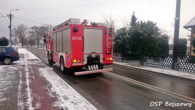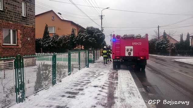16 stycznia około godzinie 11:27 do MSK w Tychach wpłynęło zgłoszenie o pożarze sadzy w przewodzie kominowym w jednym z domów jednorodzinnych w Bojszowach przy ulicy Pancerniaków. Na miejsce zostały wysłane dwa zastępy OSP Bojszowy (GBA, GBA) i dwa zastępy z JRG Tychy (GCBA, SD). Strażacy szybko poradzili sobie z zagrożeniem. Po około godzinie działania zostały zakończone i zastępy wróciły do koszar.