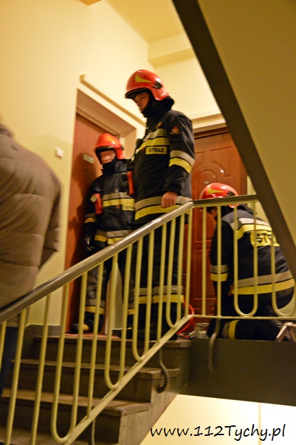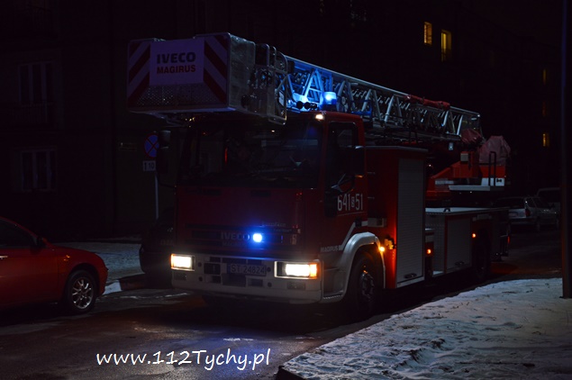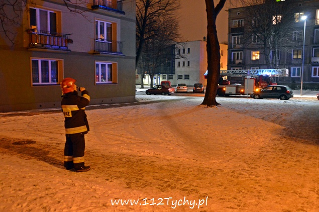 23 stycznia o godzinie 18.20 do MSK w Tychach wpłynęło zgłoszenie, od poszkodowanej kobiety, że przewróciła się na nią drabina. Na miejsce wysłane zostały dwa zastępy z JRG Tychy (GBA, SD), ZRM i patrol Policji. Po dotarciu na miejsce strażacy nawiązali kontakt z poszkodowaną kobietą. Zapadła decyzja o wyważeniu drzwi przy użyciu ręcznej wyważarki. Po otwarciu drzwi strażacy wraz z pozostałymi służbami weszli do mieszkania. Kobieta został przebadana jej stan zdrowia nie wymagał hospitalizacji. O zdarzeniu poinformowana został córka kobiety, która po kilkunastu minutach była na miejscu. Lokatorka została w swoim mieszkaniu, a działania zostały zakończone po trzydziestu minutach.