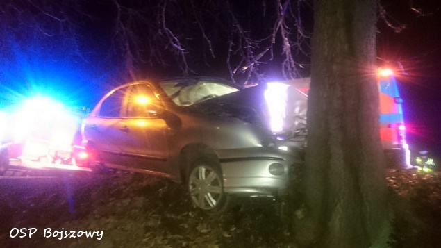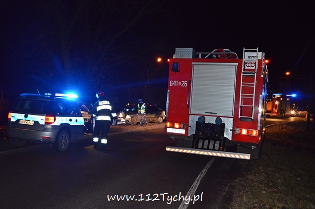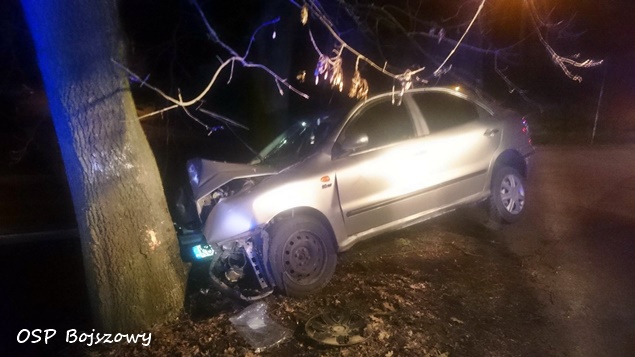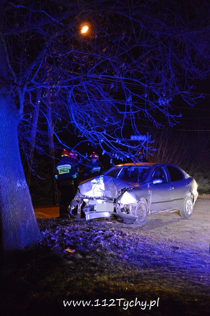 27 stycznia około godziny 18.20 do MSK w Tychach wpłynęło zgłoszenie o zdarzeniu drogowym w Jedlinie przy ulicy Bratków. Na miejsce wysłane zostały cztery zastępy strażaków: jeden z OSP Bojszowy (GBA) i trzy z JRG Tychy (GBA, GCBA, SCRt), ZRM oraz patrol WRD bieruńskiej Policji. Po dotarciu na miejsce okazało się, że kierujący samochodem Fiat Brava – 21 letni mężczyzna na łuku drogi nie zapanował nad swoim pojazdem i uderzył w przydrożne drzewo. Kierujący jak się okazało jechał za szybko. Poszkodowany mężczyzna został zabrany do szpitala w Tychach. Działania strażaków na miejscu zdarzenia polegały na jego zabezpieczeniu, odłączeniu akumulatora i neutralizacji płynów eksploatacyjnych. Na czas prowadzenia działań ratowniczych ruch na tym odcinku ulicy Bratków został całkowicie wstrzymany. Zdarzenie zostało zakwalifikowane jako kolizja. Utrudnienia w ruchu trwały okolo godziny.