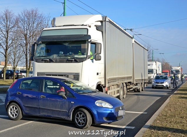 29 stycznia przed godziną 14 na ulicy Towarowej na wysokości skrzyżowania z ulicą Fabryczną doszło do kolizji drogowej samochodu osobowego z samochodem ciężarowym. Na miejsce wezwany został patrol Policji i ZRM. Jak się okazało po dotarciu na miejsce służb ratowniczych kierujący samochodem osobowym jechał prawym pasem w kierunku centrum miasta, a kierujący ciężarowym Volvo chciał skręcić do urzędu celnego. Fiat znalazł się w tzw. „martwym punkcie”. Kierujący ciężarówką nie zauważył osobówki i przepchał osobówkę kilkanaście metrów. Kierujący osobówką po opatrzeniu został na miejscu zdarzenia. Ruch na ulicy Towarowej został całkowicie zablokowany na około trzydzieści minut. Policjanci szybko wykonali niezbędną dokumentację i nakazali usunięcie pojazdów na ulicę Fabryczną. Kierujący samochodem ciężarowym obywatel Słowacji został ukarany mandatem za spowodowanie kolizji. Uszkodzony fiat został odholowany przez pomoc drogową.