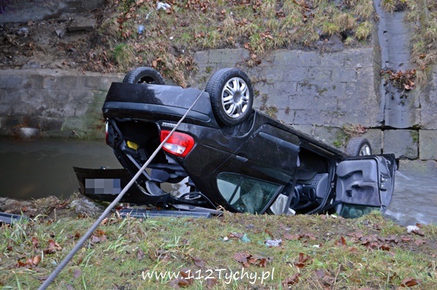 RENAULTEM WPADŁ DO POTOKU TYSKIEGO