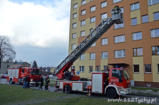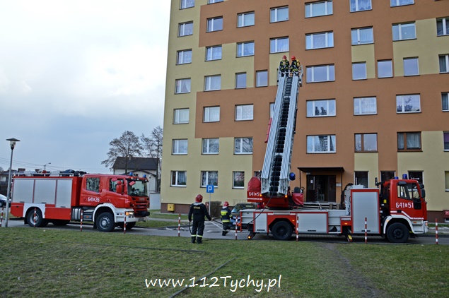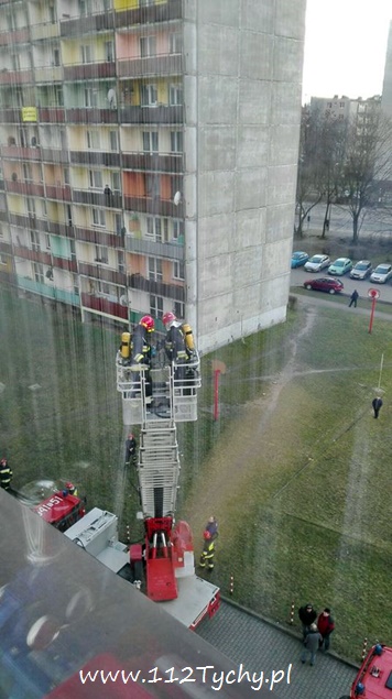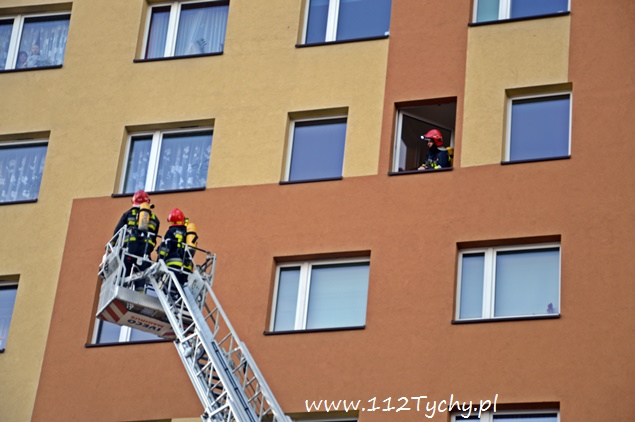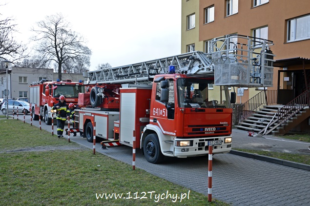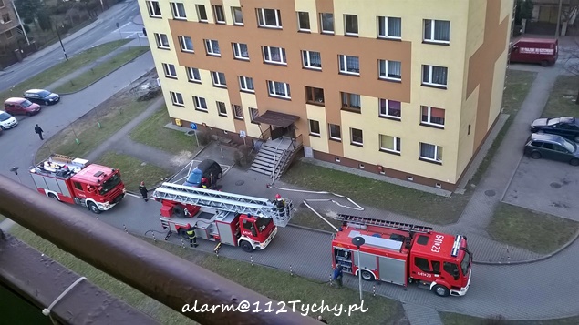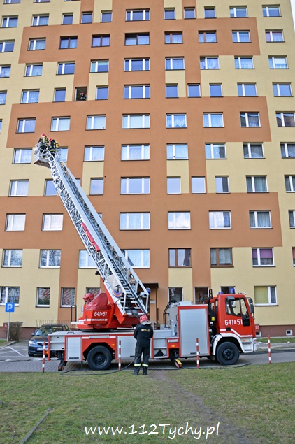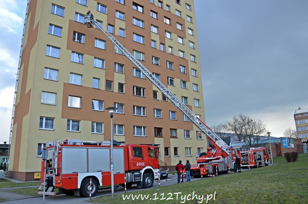 26 lutego około godziny 16 pod budynek wielorodzinny przy ulicy Starokościelnej 18 podjechały trzy zastępy tyskiej straży pożarnej (GBA, GCBA, SD). Na miejscu był również obecny pracownik administratora budynku. Jak się okazało strażacy wraz z administratorem budynku przeprowadzili ćwiczenia – symulowany pożar mieszkania na siódmym piętrze. Sprawdzane były możliwości prowadzenia działań ratowniczo – gaśniczych przy użyciu drabiny mechanicznej jak również z wykorzystaniem infrastruktury pożarowej zabudowanej w budynku. Strażacy dodatkowo sprawdzili możliwości rozwinięcia linii gaśniczej klatką schodową. Po około godzinie ćwiczenia zostały zakończone. Strażacy wraz z administratorem budynku opracowali protokół z ćwiczeń – w nim zostały zawarte wszelkie niezgodności jak i uwagi.