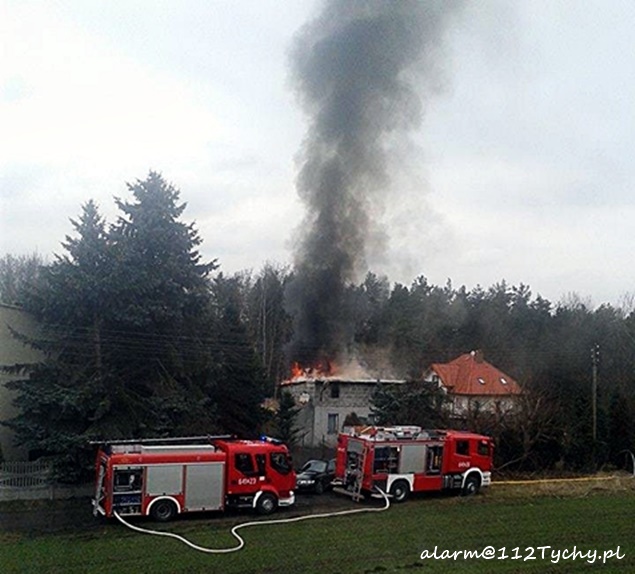 3 marca o godzinie 13.49 MSK w Tychach odebrało zgłoszenie o pożarze budynku na ulicy Świerkowej. Na miejsce wysłane zostały dwa zastępy z JRG Tychy (GBA, GCBA). Po dotarciu na miejsce okazało się, że pożarem objęty jest dach budynku gospodarczego. W budynku podłączony był prąd, który uniemożliwiał bezpieczne prowadzenie działań gaśniczych. Na miejsce wezwane zostało pogotowie energetyczne, które odłączyło zasilanie w budynku oraz patrole Policji celem zabezpieczenia miejsca działań. Strażacy blisko trzy godziny walczyli z pożarem. Po ugaszeniu ognia budynek został dokładnie sprawdzony oraz oddymiony. Policja prowadzi dalsze czynności mające na celu wyjaśnienie przyczyn pożaru.