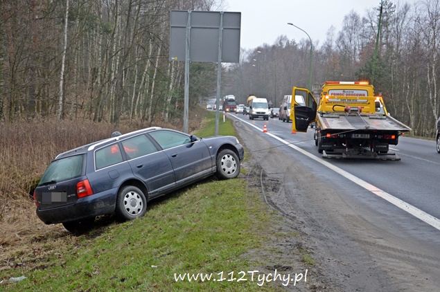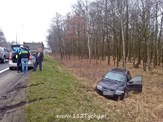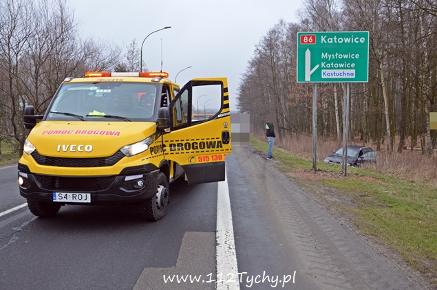 10 marca przed godziną 12 na DK 86 w kierunku Katowic przed zjazdem na Kostuchnę doszło do zdarzenia drogowego. Kierujący samochodem ciężarowym Scania jadąc lewym pasem nie zauważył jadącego prawym pasem samochodu osobowego Audi i doprowadził do zderzenia. Samochód osobowy znajdował się w tzw. martwym polu i został zepchnięty do przydrożnego rowu. Kierującemu osobówką nic się nie stało. Na miejsce wezwany został patrol tyskiej drogówki. Kierowca samochodu ciężarowego został ukarany mandatem. Na czas wyciągania osobówki z rowu, prawy pas został wyłączony z ruchu. Utrudnienia w miejscu zdarzenia trwały kilkanaście minut.