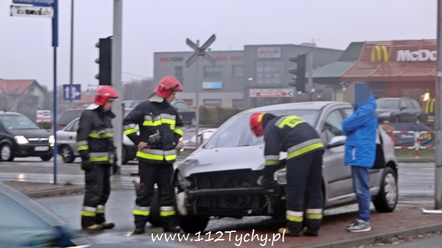 12 marca około godziny 16 na skrzyżowaniu ulic Mikołowskiej – Burschego – Dołowa doszło do zdarzenia drogowego z udziałem dwóch samochodów Peugeot. Na miejscu pojawił się błyskawicznie patrol drogówki, który akurat stał w kolejce do świateł. Uszkodzone pojazdy blokowały przejazd ulicą Mikołowską (prawy pas w kierunku browaru) i wjazd w ulicę Burschego. Ze względu na wycieki płynów eksploatacyjnych na miejsce wezwani zostali również tyscy strażacy w sile jednego zastępu (GBA). Strażacy odłączyli akumulatory, zneutralizowali wycieki płynów. Po wykonaniu dokumentacji przez Policje pojazdy zostały odholowane przez pomoc drogową. Nikomu z podróżujących pojazdami nic się nie stało. Zdarzenie zostało zakwalifikowane jako kolizja i jego sprawca został ukarany mandatem karnym.