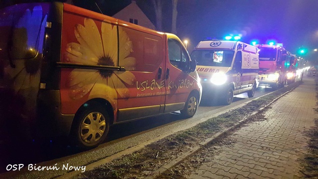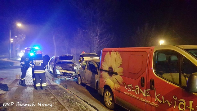 16 marca około godziny 21:35 do dyżurnego KPP Bieruń wpłynęło zgłoszenie o kolizji trzech pojazdów na skrzyżowaniu ulicy Warszawskiej na wysokości skrzyżowania z ulicą Turystyczną. Do zdarzenia zadysponowane zostały trzy zastępy JRG Tychy (GBA, GCBA, SCRt), jeden zastęp OSP Bieruń Nowy (GBARt), ZRM i patrol bieruńskiej Policji. Po dotarciu na miejsce okazało się, że w zdarzeniu brały udział dwa samochody osobowe i dostawczak. Jeden z kierujących uskarżał się na kłopoty z oddychaniem. Działania strażaków polegały na zabezpieczeniu miejsca zdarzenia, odłączeniu akumulatorów, a także kierowaniu ruchem. Trzema pojazdami podróżowało w sumie pięć osób. Podczas działań, jeden pas ruchu w kierunku Tychów był zablokowany – ruch odbywał się wahadłowo. Zdarzenie została zakwalifikowane jako kolizja, a utrudnienia w miejscu zdarzenia trwały blisko dwie godziny.