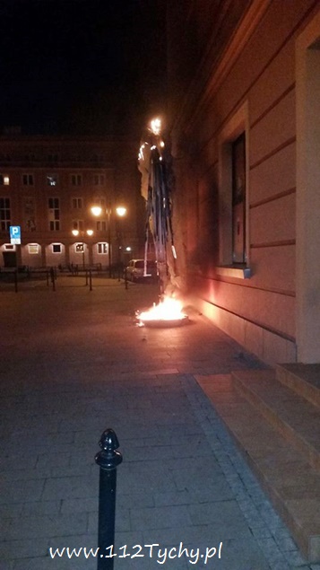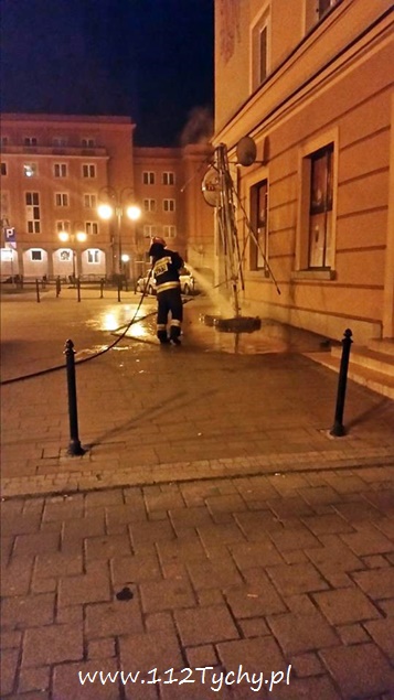 26 marca około godziny 0.20 do MSK w Tychach wpłynęło zgłoszenie o pożarze parasola przy jednym z lokali na placu św. Anny. Na miejsce wysłany został jeden zastęp JRG Tychy (GCBA) i patrol Policji. Po dotarciu na miejsce strażacy szybko poradzili sobie z zagrożeniem. Po kilku minutach pożar został ugaszony. Okopceniu uległa również elewacja budynku. Policjanci prowadzą czynności zmierzające do złapania podpalacza. Mają ułatwione zadanie ponieważ teren jest monitorowany. Po około trzydziestu minutach działania zostały zakończone i zastęp wrócił do koszar.