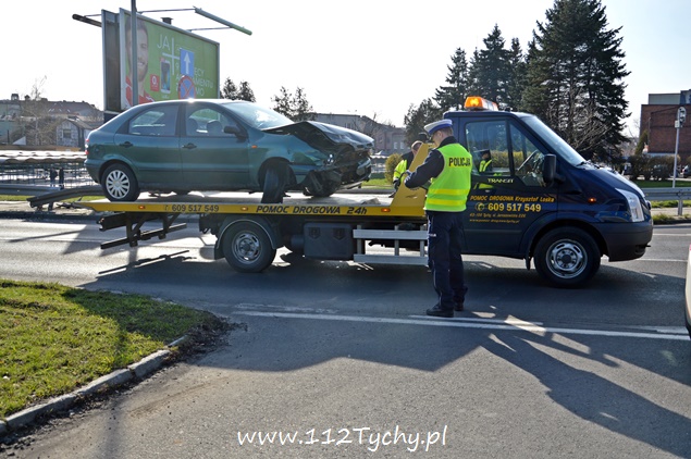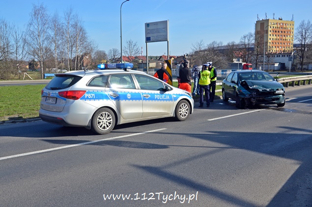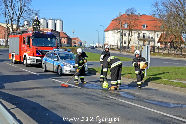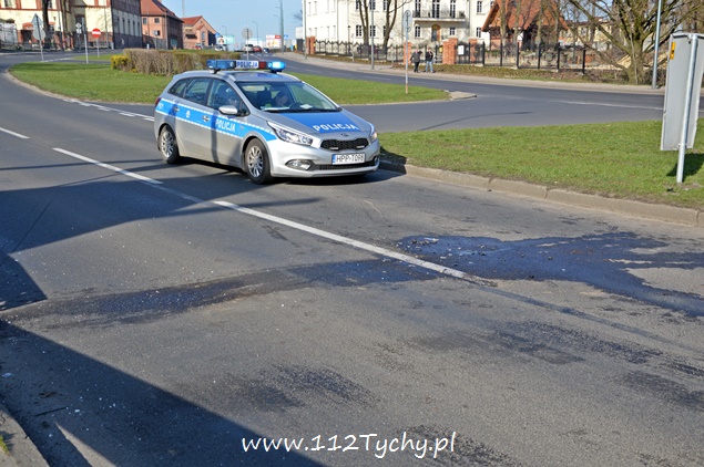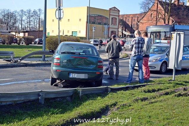 2 kwietnia około godziny 16 do dyżurnego tyskiej Policji wpłynęło zgłoszenie z WCPR Katowice o zdarzeniu drogowym na al. Bielskiej na wysokości starego targu. Ze zgłoszenia wynikało, że kierujący samochodem Fiat utracił panowanie nad swoim pojazdem i uderzył w bariery energochłonne. Na miejsce wysłany został patrol drogówki i ZRM. Po dotarciu na miejsce zgłoszenie potwierdziło się. Ze względu na wycieki płynów eksploatacyjnych na miejsce wezwany zostały również zastęp strażaków. Ruch w kierunku centrum miasta został czasowo wstrzymany. Uszkodzony pojazd został szybko odholowany na pobliski parking. W miejscu zdarzenia zatrzymał się zastęp OSP Bieruń Nowy (GBARt) wezwany do wsparcia przy licznych w dniu dzisiejszym pożarach traw, a następnie dojechał zastęp JRG Tychy (GCBA). Strażacy szybko przy użyciu sintanu i sorbentu zneutralizowali plamę. Kierujący został ukarany mandatem. Utrudnienia w ruchu trwały około godziny.