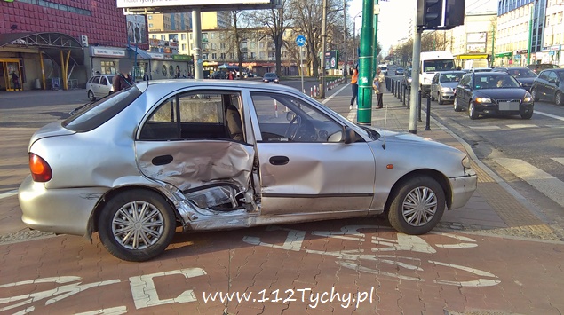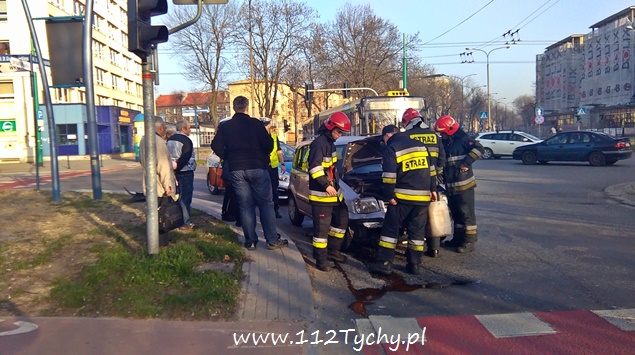 5 kwietnia około godziny 8 na skrzyżowaniu Grota Roweckiego z al. Niepodległości doszło do czołowo bocznego zderzenia dwóch samochodów osobowych. Jadący al. Niepodległości w kierunku Grota Roweckiego kierujący samochodem Hyundai wykonał manewr skrętu w lewo wprost pod jadącego z naprzeciwka Fiata. Na środku skrzyżowania doszło do zderzenia. Nikomu z podróżujących osobówkami nic się nie stało. Na miejsce wezwany został patrol drogówki oraz zastęp strażaków JRG Tychy (GBA) – wycieki płynów. Po przybyciu na miejsce i neutralizacji płynów uszkodzone pojazdy zostały usunięte. Kierujący Hyundaiem został ukarany mandatem za spowodowanie kolizji.