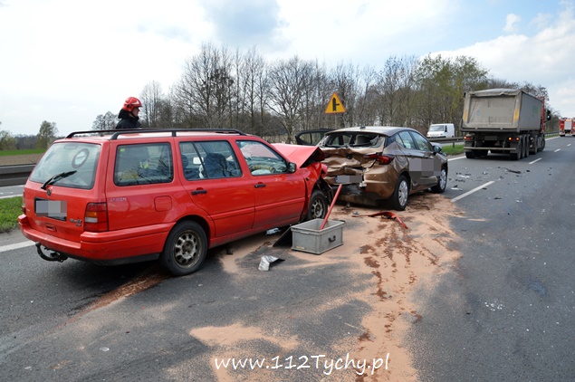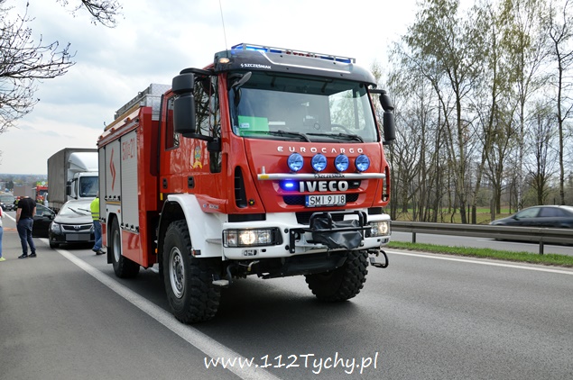 7 kwietnia około godziny 12 na ulicy Krakowskiej w Mikołowie (DK 44) na pasie w kierunku Gliwic na odcinku 50-100m doszło do dwóch zdarzeń drogowych. Na miejsce wysłane zostały zastępy JRG Mikołów (GBA, SCRt), patrole mikołowskiej Policji i ZRM. Po dotarciu na miejsce okazało się, że na prawym pasie w tył osobowej Toyoty wjechało ciężarowe Renault, a na lewym pasie kierujący VW nie zachował należytej odległości i wjechał w tył jadącego przed nim Opla, wpychając go w tył jadącej przed nimi ciężarówki marki Renault z naczepą. W wyniku tych dwóch zdarzeń nikt nie ucierpiał. Na czas trwania działań ratowniczych ruch w kierunku Mikołowa został całkowicie zablokowany. Po około czterdziestu minutach ruch został częściowo przywrócony – odbywał się pomiędzy rozbitymi pojazdami. Mikołowscy policjanci prowadzą dalsze czynności w sprawie tych zdarzeń.