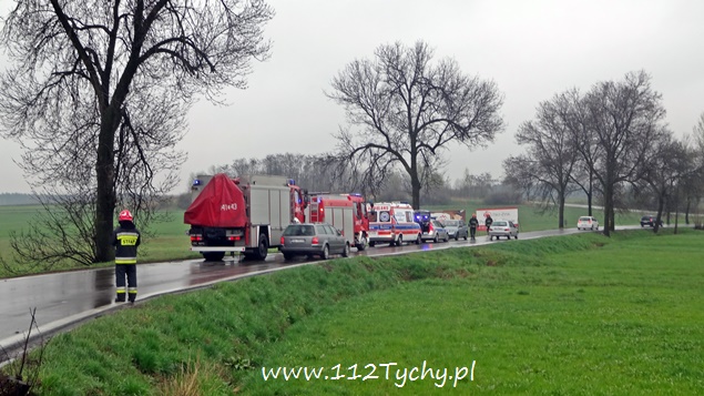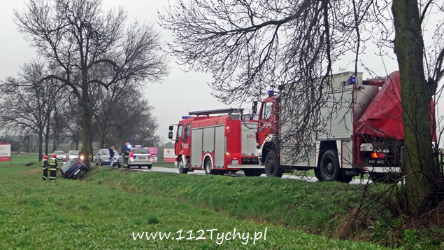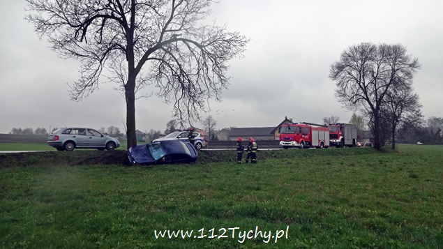 9 kwietnia około godziny 13.30 do MSK w Tychach wpłynęło zgłoszenie o dachowaniu samochodu osobowego na ulicy Bieruńskiej. Na miejsce wysłane zostały dwa zastępy z JRG Tychy (GBA, SCRt), ZRM i patrole Policji. Po dotarciu na miejsce okazało się, że nie doszło do dachowania pojazdu. Kierujący samochodem Renault 19 letni mężczyzna z niewyjaśnionych przyczyn utracił panowanie nad swoim pojazdem i wjechał do przydrożnego rowu. Został zabrany do szpitala na dokładniejsze badania. Przez blisko godzinę ruch w miejscu zdarzenia odbywał się wahadłowo. Uszkodzony pojazd został odholowany przez pomoc drogową. Tyscy policjanci prowadzą dalsze czynności w sprawie tego zdarzenia.