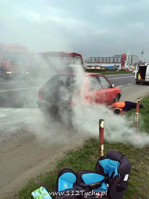 14 kwietnia około godziny 10 na ulicy Oświęcimskiej na wysokości wyjazdu ze stacji paliw w kierunku browaru doszło do pożaru samochodu osobowego. Kierujący Skodą mężczyzna zatrzymał swój pojazd na poboczu i przystąpił do gaszenia swojego pojazdu. W miejscu pożaru zatrzymało się kilku kierowców, którzy użyczyli gaśnic celem uratowania pojazdu, jednym z nich był strażak ochotnik, który zabezpieczył miejsce zdarzenia i poinformował o zdarzeniu tyską straż pożarna. Po kilku minutach strażacy w sile jednego zastępu (GBA) byli na miejscu. Tylko dzięki szybkiej reakcji udało się uratować pojazd.