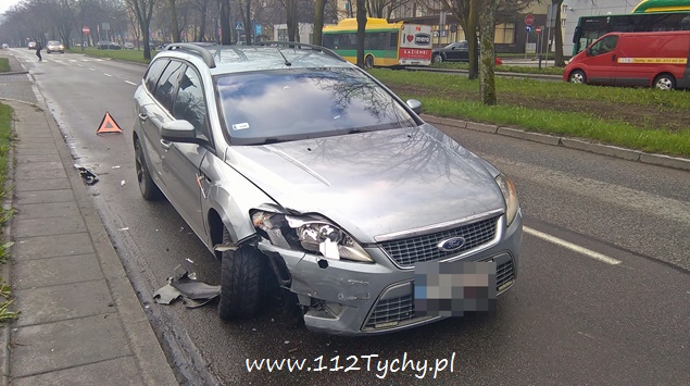 15 kwietnia po godzinie 7 na alei Niepodległości doszło do zdarzenia drogowego z udziałem dwóch samochodów osobowych. Kierujący Fiatem Panda mężczyzna wyjeżdżając z parkingu przy UM Tychy nie ustąpił pierwszeństwa jadącemu aleją Niepodległości mężczyźnie kierującemu Fordem Mondeo i doprowadził do kolizji. Fiat wjechał na pas zieleni, a uszkodzony Ford zablokował prawy pas w kierunku ulicy Grota Roweckiego. Na miejsce wezwany został ZRM i patrol Policji. Kierujący Fiatem mężczyzna został zabrany do szpitala na badania. Obydwaj kierujący byli trzeźwi. Uszkodzone pojazdy zostały odholowane. Policja prowadzi dalsze czynności w tej sprawie.