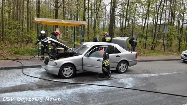 2 maja o godzinie 13:22 do MSK w Tychach wpłynęło zgłoszenie o pożarze samochodu osobowego marki Mercedes na ulicy Ruchu Oporu w Bojszowach Nowych w pobliżu PPI Chrobok. Na miejsce wysłane zostały dwa zastępy strażaków: po jednym z OSP Bojszowy Nowe (GBA) i JRG Tychy (GBA). Po przyjeździe na miejsce okazało się, że pożar wybuchł w komorze silnika, a próby jego gaszenia gaśnicami spełzły na niczym. Przy pomocy szybkiego natarcia, udało się szybka opanować zagrożenie. Dodatkowo na miejsce wezwany został patrol bieruńskiej Policji. Działania zostały zakończone około godziny 14.