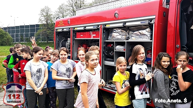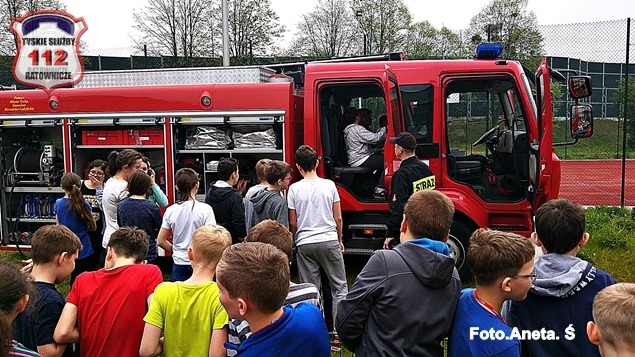 W dniu 04.05.2016 r. Szkoła Podstawowa nr 36 im. Narodów Zjednoczonej Europy w Tychach gościła przedstawicieli Komendy Miejskiej PSP w Tychach. Wizyta gości dotyczyła kampanii pod hasłem „STOP pożarom traw!”, której celem jest podniesienie świadomości w zakresie zagrożeń związanych z wiosennym podpalaniem nieużytków rolnych. W trakcie spotkania uczniowie wysłuchali prelekcji na temat zagrożenia związanego z wypalaniem traw, zwiedzili wóz strażacki oraz poznali jego wyposażenie, a także mieli okazję sprawdzić swoją celność za pomocą węża strażackiego. Społeczność szkolna serdecznie dziękuje za przeprowadzone zajęcia.