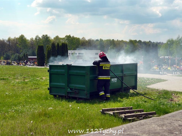 6 maja około godziny 13.15 do MSK w Tychach wpłynęło zgłoszenie o pożarze metalowego kontenera przy cmentarzu na ulicy Żorskiej. Na miejsce wysłany został jeden zastęp z JRG Tychy (GBA). Po dotarciu na miejsce podany został jeden prąd wody celem ugaszenie pożaru. Po dziesięciu minutach działania zostały zakończone i zastęp wrócił do koszar.