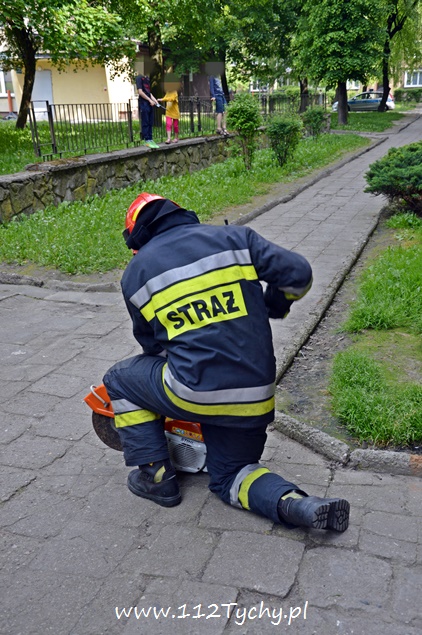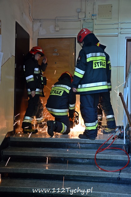 22 maja około godziny 9.40 do MSK w Tychach wpłynęło zgłoszenie z WCPR Katowice, że w jednym z mieszkań na parterze w budynku wielorodzinnym przy ulicy Czarnieckiego znajduje się kobieta, która potrzebuje pomocy. Na miejsce wysłany został jeden zastęp JRG Tychy (GBA), ZRM i patrol Policji. Po dotarciu na miejsce okazało się, że w mieszkaniu jest kobieta, która upadla i nie może się podnieść i otworzyć drzwi. KDR podjął decyzję o konieczności wywarzenia drzwi. Podjęta została próba wywarzenia przy użyciu wyważarki hydraulicznej, jednak nie przyniosła ona skutku. Strażacy szybko podjęli decyzję, że konieczne będzie ucięcie zawiasów przy użyciu piły tarczowej. Po kilku chwilach drzwi zostały otwarte. W mieszkaniu znaleziono przytomna kobietę. Po przebadaniu przez będących na miejscu ratowników pozostała ona w mieszkaniu. Policja powiadomiła członków rodziny. Po około czterdziestu minutach działania służb zostały zakończone.