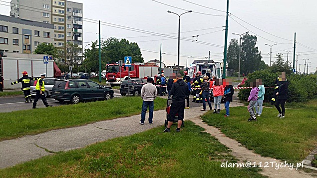 26 maja około godziny 19.20 na ulicy Stoczniowców w rejonie myjni bezdotykowej doszło do groźnego zdarzenia drogowego. Na tył Renault, które zatrzymało się przed oznakowanym przejściem dla pieszych w celu przepuszczenia dwóch dziewczynek z dużą siła wjechał Peugeot. Na miejsce natychmiast wezwane zostały wszystkie służby. Do akcji ruszyły trzy zastępy JRG Tychy (GBA, GCBA, SCRt), dwa ZRM i patrol Policji. Na miejscu okazało się, że poszkodowane zostało dwoje dzieci podróżujące Renaultem. Z ustaleń pracujących na miejscu policjantów wynika, że kierująca Peugeotem najprawdopodobniej zagapiła się. Z uzyskanych informacji od kierowcy feralnego Renaulta, z dziećmi wszystko jest w porządku i skończyło się na dużej porcji strachu i rozbitych pojazdach. Utrudnienia w ruchu trwały około półtorej godziny. Policja prowadzi dalsze czynności w tej sprawie.