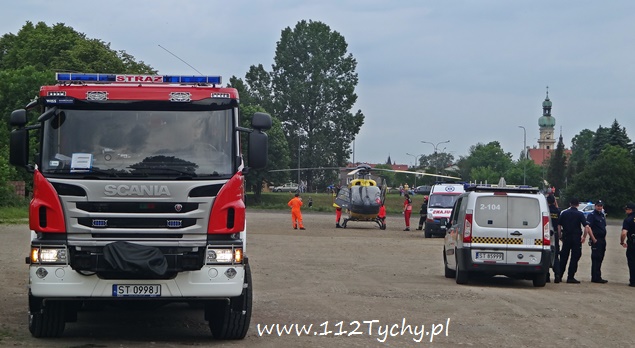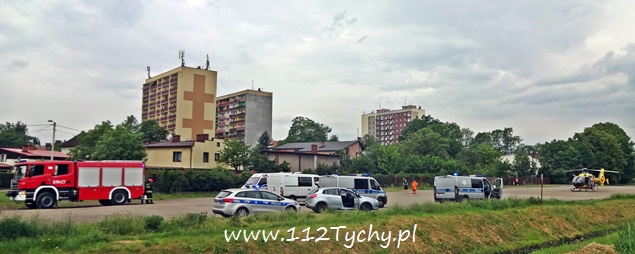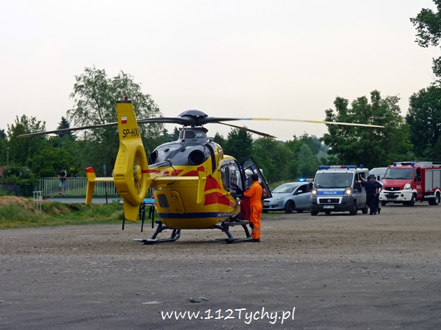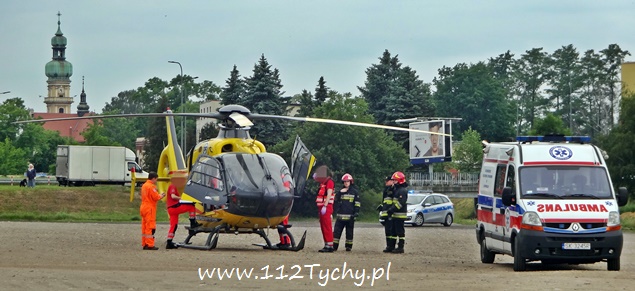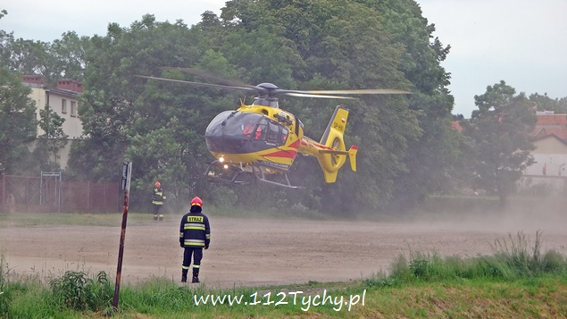 30 maja około godziny 9 do MSK w Tychach wpłynęło zgłoszenie od załogi śmigłowca HEMS Ratownik 4 z prośbą o zabezpieczenie lądowiska. Ratownik 4 został wezwany przez załogę ZRM do 59 letniego mieszkańca ulicy Kapicy, który wypadł z okna na pierwszym piętrze i doznał obrażeń wewnętrznych. Na miejsce lądowania został wytypowany szutrowy parking w rejonie ulicy Starokościelnej i al. Bielskiej (stary targ). Lądowisko zostało zabezpieczone przez dwa zastępy JRG Tychy (GCBARt, SLRt), kilka patroli Policji i Straży Miejskiej, które zostały wysłane jako wsparcie. Przy lądowaniu latającej karetki wzbiły się tumany kurzu. Dlatego też po wylądowaniu, teren wokół śmigłowca został przez strażaków obficie zlany wodą. Poszkodowany mężczyzna w stanie ciężkim został przetransportowany drogą lotniczą do szpitala w Sosnowcu. Trwa wyjaśnianie przyczyn i okoliczności tego zdarzenia.