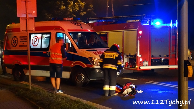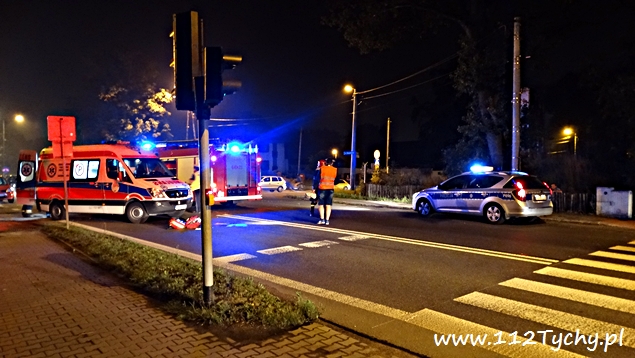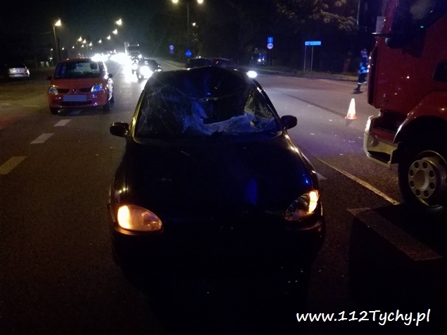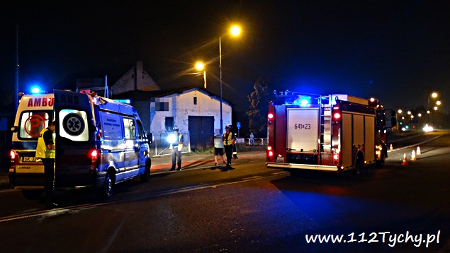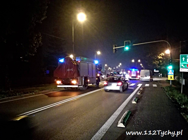 28 lipca około godziny 21:50 do MSK Tychy wpłynęło zgłoszenie o zdarzeniu drogowym na ulicy Oświęcimskiej w rejonie skrzyżowania z ulicą Turyńską – Kościelną – Główną. Na miejsce zadysponowane zostały dwa zastępy JRG Tychy (GBA, SCRt), ZRM i patrol Policji. Po dotarciu na miejsce okazało się, że doszło tam do potrącenia pieszego. Działania strażaków polegały na zabezpieczeniu miejsca zdarzenia, udzieleniu pieszemu jak i kierowcy samochodu Opel kwalifikowanej pomocy przedmedycznej, a następnie przekazaniu ich pod opiekę przybyłym na miejsce Zespołom Ratownictwa Medycznego oraz kierowaniu ruchem. Ze wstępnych ustaleń policjantów wynika, że pieszy wtargnął wprost pod nadjeżdżający pojazd. Kierujący samochodem był trzeźwy, niestety pieszy znajdował się pod wpływem alkoholu. W miejscu zdarzenia w czasie działań występował ruch wahadłowy. Utrudnienia w ruchu trwały blisko dwie godziny. Dalsze czynności w sprawie prowadzą policjanci WRD KMP Tychy.