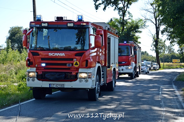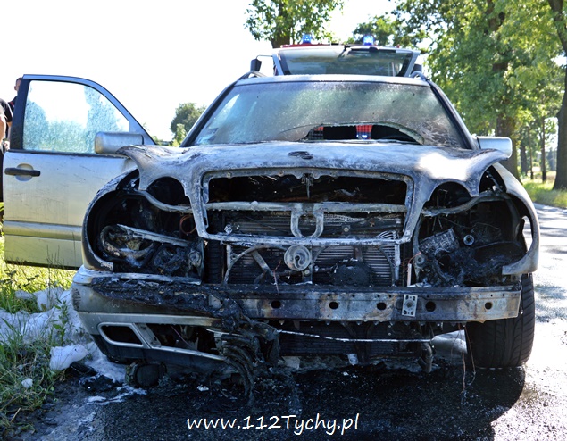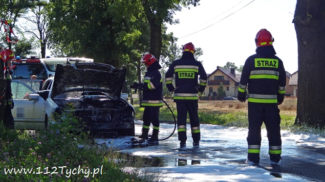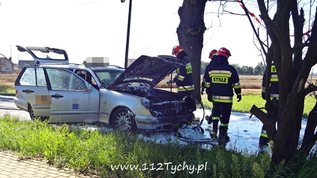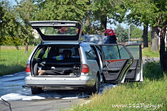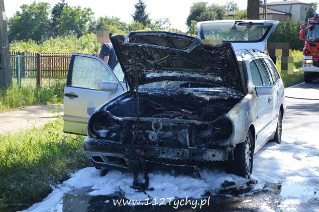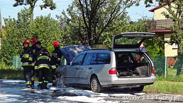 8 sierpnia po godzinie 15 do MSK w Tychach wpłynęło zgłoszenie o pożarze samochodu osobowego na ulicy Mysłowickiej w rejonie skrzyżowania z ulicą Dworską. Na miejsce wysłane zostały dwa zastępy z JRG Tychy (GBA, GCBA) i patrol Policji. Po dotarciu na miejsce strażacy zastali osobowego Mercedesa, w którym zajęta ogniem była komora silnika. Podany został jeden prąd piany ciężkiej celem ugaszenia pożaru. Dodatkowo zakręcona został butla instalacji gazowej oraz odłączony został akumulator. Na czas działań gaśniczych ruch na ulicy Mysłowickiej został całkowicie wstrzymany. Po kilkunastu minutach pożar został ugaszony i wprowadzony został ruch wahadłowy. Spalony samochód został odholowany przez wezwaną na miejsce pomoc drogową. Utrudnienia trwały blisko półtorej godziny. Na chwilę obecną nie jest znana przyczyna powstania pożaru. Nikomu z podróżujących samochodem nic się nie stało.