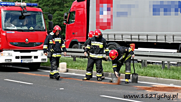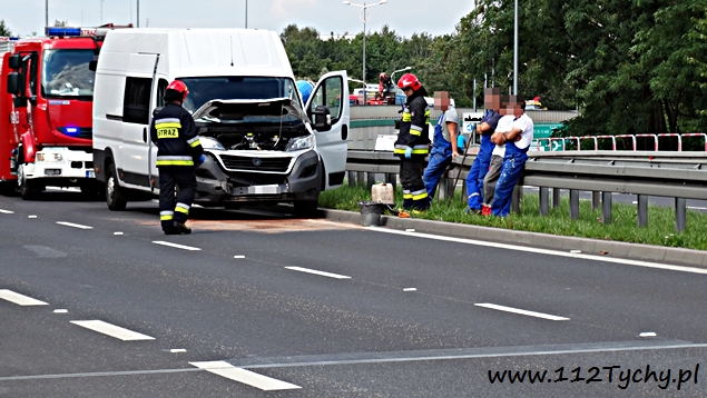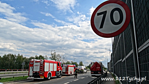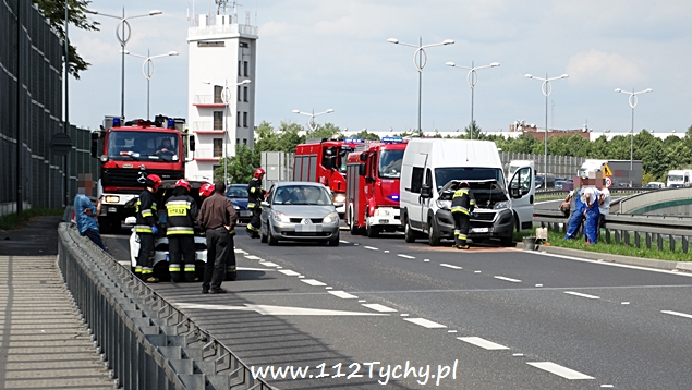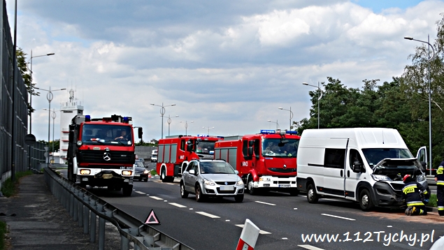 12 sierpnia po godzinie 15 na trasie DK 1 w rejonie PSP Tychy (nad aleją Niepodległości) doszło do zdarzenia drogowego. Na tył hamującego samochodu SsangYoung uderzył samochód dostawczy. W zdarzeniu ucierpiał również osobowy Ford. Na miejsce natychmiast wezwane zostały wszystkie służby: trzy zastępy JRG Tychy (GBA, GCBARt, SCRt), ZRM i patrol Policji. Ruch na lewym pasie w kierunku Pszczyny został całkowicie zablokowany. Jak się okazało po dotarciu służb kierujący samochodem SsangYoug ostro zahamował przed wciskającą się na lewy pas ciężarówką. Niestety jadące za nim pojazdy już nie zdążyły. Na szczęście skończyło się tylko na uszkodzonych pojazdach. Utrudnienia trwały około godziny. Tyscy policjanci prowadzą dalsze czynności w tej sprawie.
