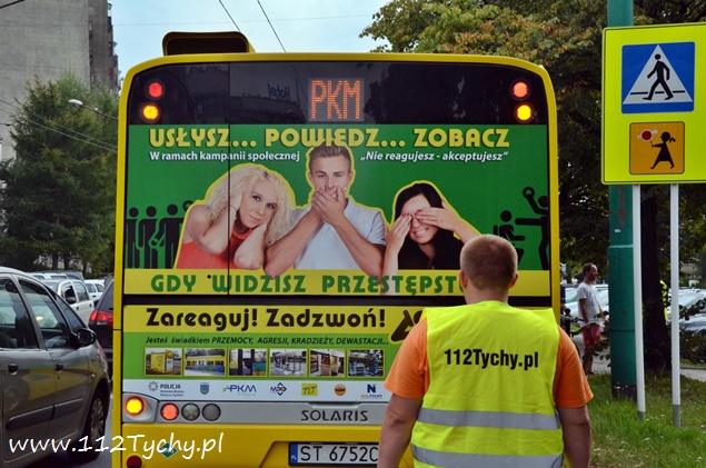 W dniu dzisiejszym, tj. 29 sierpnia około godziny 16 z inicjatywy policjantów z Komendy Miejskiej Policji w Tychach rozpoczęły się działania profilaktyczne pod hasłem „Zobacz..usłysz..powiedz..”. Przedsięwzięcie zorganizowane zostało w ramach kampanii społecznej „Nie reagujesz – akceptujesz”. Celem działań jest zwiększenie poczucia bezpieczeństwa pasażerów i kierowców komunikacji miejskiej oraz uświadomienie społeczeństwu do czego może doprowadzić nasza bierność, o czym na własne oczy mogli przekonać się tyszanie podczas wczorajszej symulacji. Współpraca pomiędzy Komendą Miejską Policji w Tychach, Strażą Miejską, Miejskim Zarządem Komunikacji, Przedsiębiorstwem Komunikacji Miejskiej w Tychach oraz Tyskimi Liniami Trolejbusowymi zapoczątkowała działania profilaktyczne pod hasłem „Zobacz..usłysz..powiedz…”. Przedsięwzięcie ukierunkowane jest na zwiększenie świadomości społecznej pod kątem zapobiegania drobnym, a także dotkliwym stratom powstałym na skutek kradzieży kieszonkowych. Drugim problemem poruszanym w trakcie przedmiotowych działań jest zapobieganie przejawom agresji, zarówno werbalnej jak i niewerbalnej, z którą mogą spotkać się nie tylko osoby korzystające ze środków komunikacji miejskiej ale również kierowcy i kontrolerzy biletów oraz skutkami takowej agresji. Działania rozpoczęły się w sierpniu, a ich inauguracja miała miejsce 29 sierpnia br. w Tychach na ulicy Dmowskiego, podczas symulacji wypadku z udziałem autokaru w pobliżu przejścia dla pieszych. Akcja tyskich policjantów miała przede wszystkim zadziałać na wyobraźnię kierowców jak i niechronionych uczestników ruchu drogowego i pokazać jakie mogą być skutki naszej bierności. Wystarczy jeden agresywny pasażer, by rozproszyć kierowcę i doprowadzić do tragedii, w której tak jak było to przedstawione podczas wczorajszej symulacji, mogą zginąć osoby postronne. Podczas działań policjanci, ratownicy medyczni oraz przedstawiciele komunikacji miejskiej uświadamiali tyszan jakie zagrożenia i skutki niesie za sobą brak reakcji. Ponadto w ramach ogólnopolskiej akcji „Bezpieczny bo widoczny” oraz „Bezpieczna droga do szkoły” pieszym wręczane były odblaski.