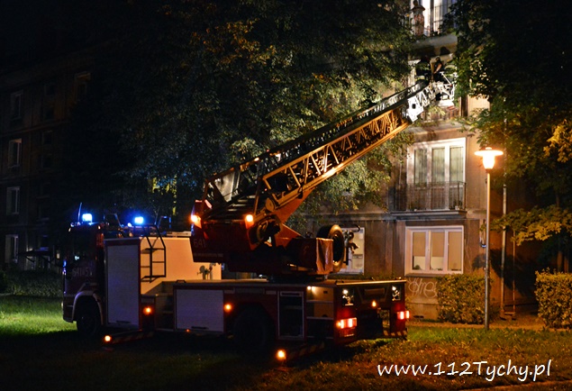 14 września około godziny 20 do dyżurnego KMP Tychy wpłynęło zgłoszenie od zaniepokojonych sąsiadów, że w jednym z mieszkań budynku wielorodzinnego przy alei Bielskiej od kilku dni ujada pies, a lokatora nie widać. Na miejsce wysłany został podległy patrol celem sprawdzenia zgłoszenia. Po przybyciu na miejsce policjanci potwierdzili zgłoszenie. Dodatkowo w mieszkaniu paliło się światło. Po rozmowach z sąsiadami podjęta została decyzja o konieczności wejścia do mieszkania. W tym celu na miejsce do pomocy wezwani zostali tyscy strażacy w sile dwóch zastępów (GBA, SD). Po przybyciu na miejsce i sprawieniu drabiny mechanicznej strażacy wraz z policjantami weszli do mieszkania. W mieszkaniu poza psem nikogo nie zastano. Pies był zadbany i miał na swoich miskach wodę i karmę. O sytuacji został powiadomiony dyżurny. Podjęta została decyzja, że mieszkanie zostanie zamknięte, a pies w nim pozostanie. Po około czterdziestu minutach działania zostały zakończone.