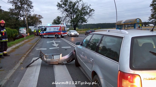 29 września około godziny 6.30 na ulicy Mikołowskiej w rejonie skrzyżowania z ulicą Wierzbową doszło do zdarzenia drogowego z udziałem dwóch samochodów osobowych. Na miejsce wezwane zostały wszystkie służby: ZRM, patrol Policji i jeden zastęp JRG Tychy (GBA). Po dotarciu na miejsce okazało się, że w zdarzeniu brały udział VW Passat i Ford Fiesta, który w wyniku zderzenia wjechał do przydrożnego rowu. Nikomu z uczestników zdarzenia nic poważnego się nie stało. Ruch w obu kierunkach w miejscu zdarzenia odbywał się z niewielkimi utrudnieniami. Policjanci WRD KMP Tychy prowadzą dalsze czynności w sprawie tego zdarzenia.