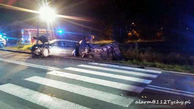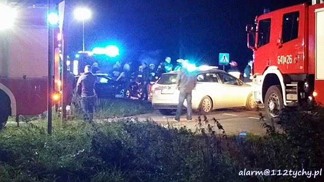13 października około godziny 22.20 w Bieruniu na skrzyżowaniu ulic Turystycznej – Bojszowskiej – Peryferyjnej doszło do wypadku drogowego z udziałem dwóch samochodów osobowych marki AUDI. Na miejsce wysłane zostały zastępy JRG Tychy (GBA, GCBARt, SCRt), OSP Bieruń Stary (GBA), OSP Bojszowy (GBA), karetki pogotowia i patrole bieruńskiej Policji. Ruch na skrzyżowaniu został całkowicie zablokowany. Po zderzeniu jeden z samochodów (Audi A3) przewróciło się na bok. Dwie osoby podróżujące Audi A3 zostały przewiezione do szpitala ( 28 letni kierowca z urazem miednicy, a 20 letni pasażer z podejrzeniem pęknięcia podstawy czaszki). Jak ustalili pracujący na miejscu policjanci kierujący samochodem Audi A3 28 latek jadąc ulicą Bojszowską nie ustąpił pierwszeństwa przejazdu jadącemu ulicą Turystyczną kierowcy Audi A4 – doprowadzając do zdarzenia. Działania strażaków na miejscu polegały na jego zabezpieczeniu, odłączeniu akumulatorów w rozbitych pojazdach i oświetleniu miejsca zdarzenia. Utrudnienia w miejscu zdarzenia trwały blisko dwie godziny. Sprawcy zdarzenia – 28 latkowi została pobrana krew do badania. Bieruńscy policjanci prowadzą dalsze czynności w sprawie tego wypadku.