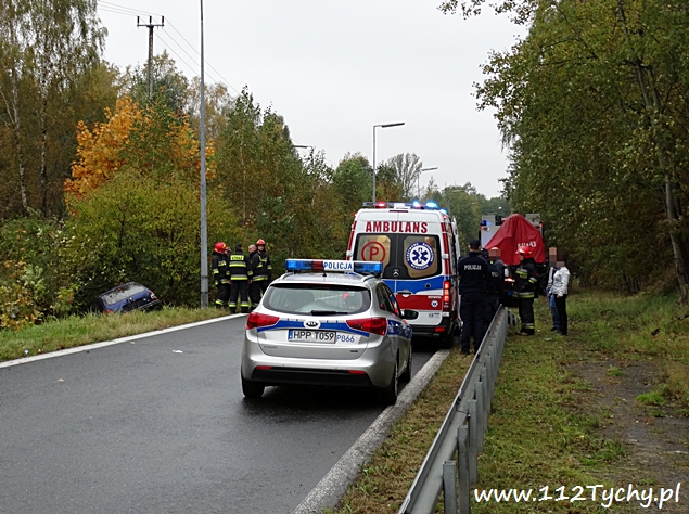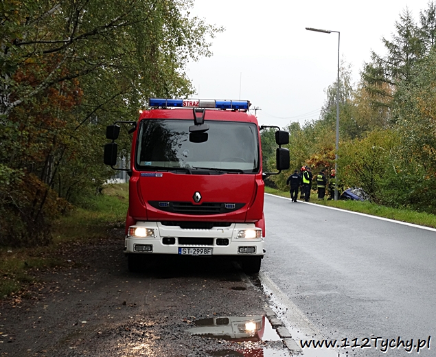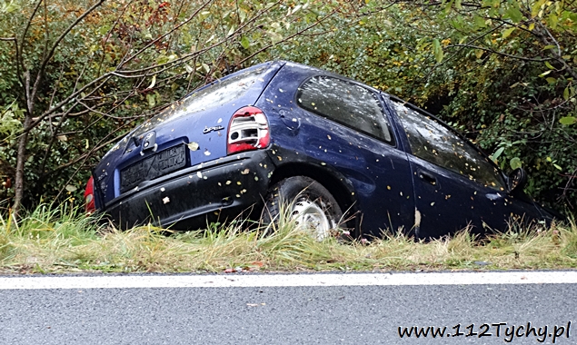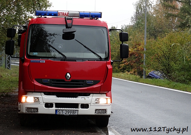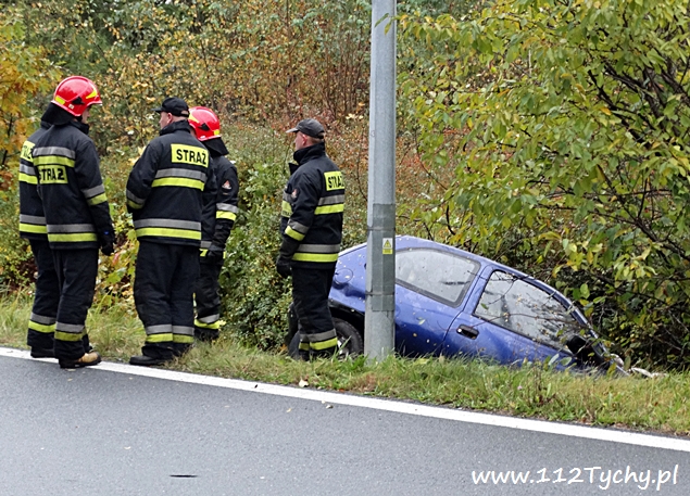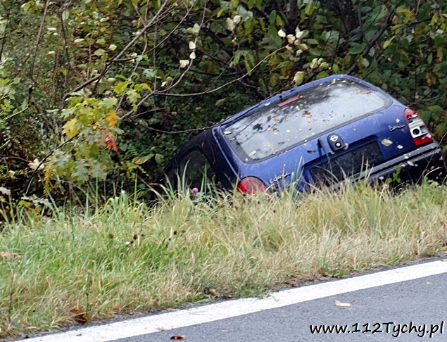 16 października około godziny 14 do MSK w Tychach wpłynęło zgłoszenie o zdarzeniu drogowym na zjeździe z trasy DK 1 (ulica Beskidzka) na DK 44 (ulica Oświęcimska). Ze zgłoszenia wynikało, że kierujący samochodem Opel Corsa wjechał do przydrożnego rowu. Na miejsce wysłane zostały dwa zastępy z JRG Tychy (GBA, SCRt), ZRM i patrol Policji. Po dotarciu na miejsce zgłoszenie potwierdziło się. Kierujący Oplem mężczyzna z urazem ręki został zabrany do szpitala. Ruch na łączniku odbywał się z utrudnieniami. Na czas wyciągania samochodu z rowu przez pomoc drogową został on całkowicie wstrzymany. Prawdopodobną przyczyną zdarzenia było niedostosowanie prędkości do panujących warunków na drodze. Utrudnienia trwały blisko półtorej godziny. Tyscy policjanci prowadzą dalsze czynności w tej sprawie.