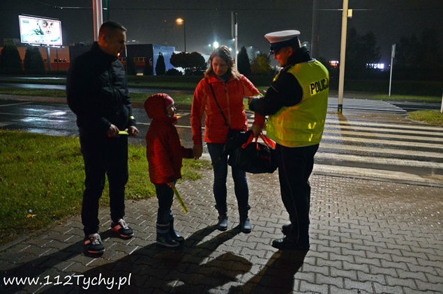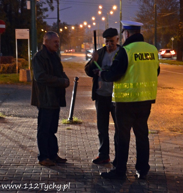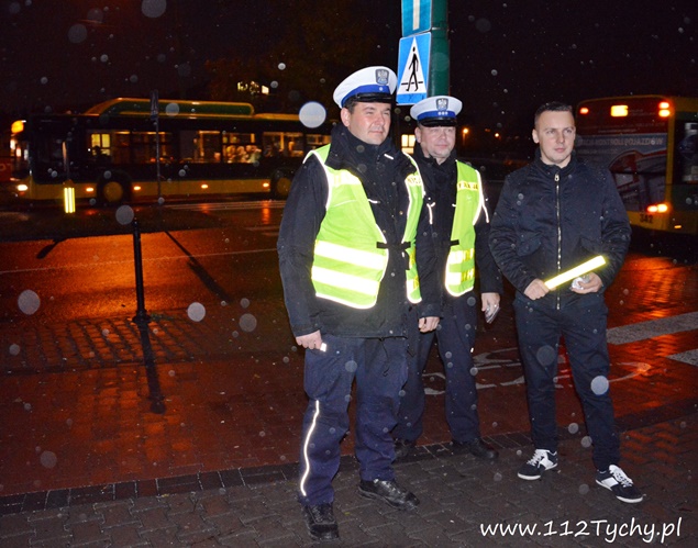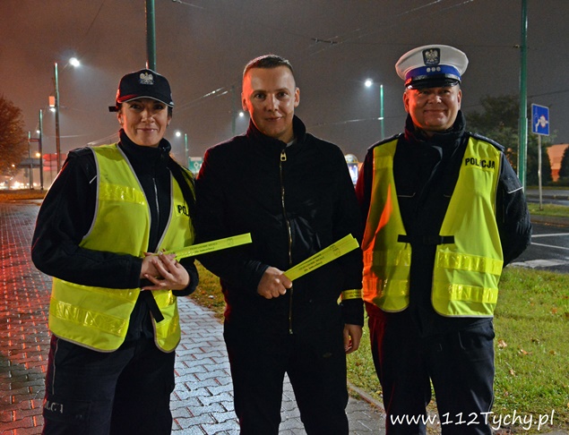 25 października w godzinach popołudniowo – wieczornych funkcjonariusze WRD KMP Tychy wraz z przedstawicielami portalu 112Tychy.pl i NOL Tychy przeprowadzili w kilku miejscach naszego miasta akcję profilaktyczną dla rowerzystów i pieszych. Celem akcji było uświadomienie NURD (nieuchronnym uczestnikom ruchu drogowego) zagrożeń wynikających z ich zachowania na drodze. Największa uwaga skierowana była na rowerzystów, którzy nagminnie przejeżdżają na swoich jednośladach (nieoświetlonych) przez oznakowane przejścia dla pieszych, pomimo tego, że nie są one do tego przystosowane (brak odpowiednich znaków). Działania zostały przeprowadzone, m.in. na ulicy Sikorskiego ( w rejonie pętli trolejbusowej), Towarowej i al. Niepodległości. W trakcie działań policjanci pouczali mieszkańców jak powinni zachować się w rejonie przejść dla pieszych i oznakowanych ścieżek rowerowych, a następnie z przedstawicielami portali wręczali pieszym i rowerzystom opaski odblaskowe NOL Tychy i przypinki odblaskowe portalu 112Tychy.pl. Podobne akcje będą przeprowadzane w innych częściach naszego miasta.