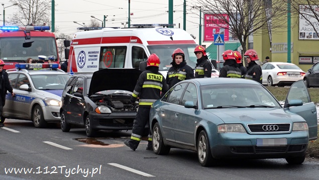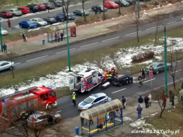 9 grudnia około godziny 12.30 na al. Piłsudskiego w rejonie numeru 67 doszło do zdarzenia drogowego. Na tył zatrzymującego się Audi najechał Fiat. Na miejsce wezwane zostały wszystkie służby ratunkowe. Na pomoc uczestnikom zdarzenia ruszyły trzy zastępy JRG Tychy (GBA, GCBA, SCRt), karetka pogotowia i patrole tyskiej Policji. Na czas działań ratunkowych ruch w kierunku Auchan został całkowicie wstrzymany. Kierująca Fiatem kobieta została zabrana do szpitala na dalsze badania. Z wstępnych informacji wynika, że kierująca samochodem Fiat kobieta nie zachowała należytej odległości od poprzedzającego pojazdu i najechała na tył zatrzymującego się Audi, które zwalniało, gdyż jadący przed nim samochód wykonywał manewr skrętu w prawo na pobliski parking – na przystanku znajdował się trolejbus. Dokładne okoliczności tego zdarzenia wyjaśnią tyscy policjanci.