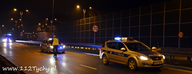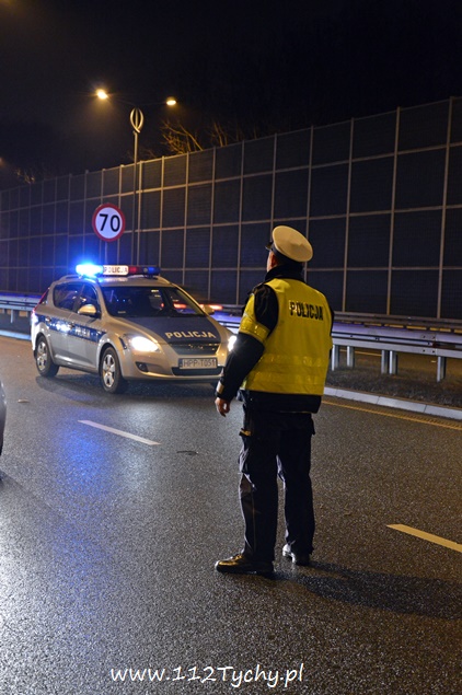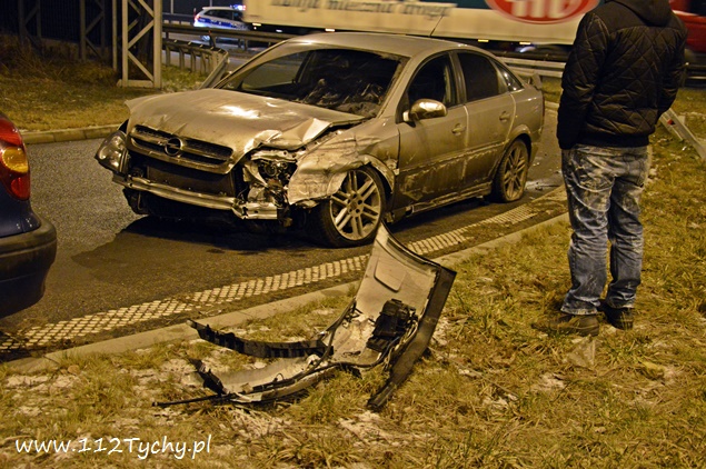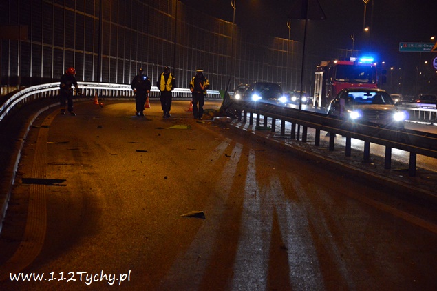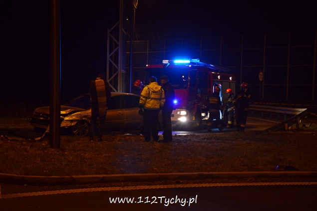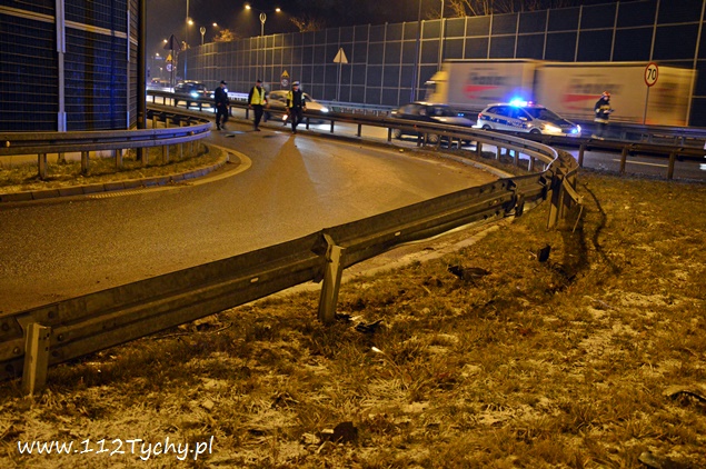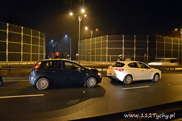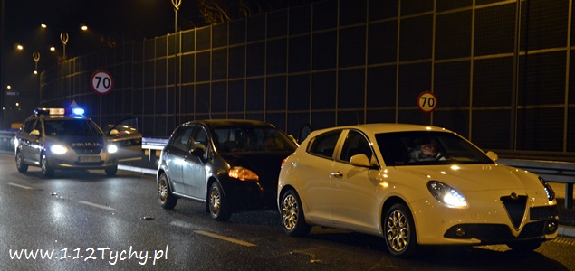 22 grudnia około godziny 20.15 na ulicy Beskidzkiej (DK 1) w rejonie zjazdu na ulicę Frycza Modrzewskiego doszło do zdarzenia drogowego. O zdarzeniu poinformowany został dyżurny KMP Tychy. Na miejsce wysłany został patrol Policji. Jak się okazało po dotarciu na miejsce były tam dwa zdarzenia. Pierwsze zdarzenie miało miejsce na zjeździe na ulicę Frycza Modrzewskiego, gdzie kierujący Oplem Vectra około dwudziesto pięcio letni mężczyzna nie zapanował nad swoim pojazdem i uszkodził plastikowe elementy infrastruktury drogowej oraz bariery energochłonne. Drugie zdarzenie miało miejsce na lewym pasie trasy DK 1 w kierunku Katowic gdzie kierująca samochodem Alfa Romeo przyhamowała z powodu uderzenia w jej pojazd znaku drogowego, który został wyrwany przez Opla, a następnie w tył Alfy wjechał kierujący Fiatem. Uszkodzone pojazdy zablokowały ruch. Będący na miejscu policjanci wezwali do pomocy kolejny patrol oraz zastęp tyskich strażaków (GBA). Strażacy po dotarciu na miejsce usunęli z drogi rozsypane elementy oznakowania, a następnie pomogli usunąć rozbite pojazdy na ulicę Frycza Modrzewskiego. Po przestawienie pojazdów strażacy zajęli się rozbitym Oplem – odłączony został akumulator oraz zneutralizowali rozlane płyny eksploatacyjne. Rozbite pojazdy następnie zostały odholowane przez pomoc drogową. Kierujący Oplem i Fiatem zostali ukarani mandatami. Utrudnienia w miejscu zdarzeń trwały około godziny.