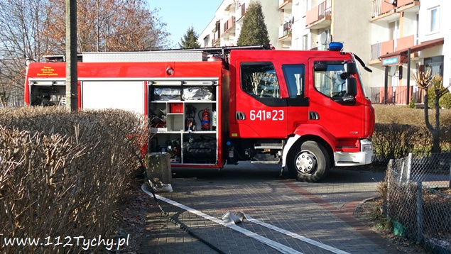 31 grudnia około godziny 11.28 do MSK w Tychach wpłynęło zgłoszenie o pożarze mieszkania w budynku wielorodzinnym przy ulicy Sikorskiego 191. Na miejsce natychmiast wysłany został pluton gaśniczy JRG Tychy (GBA, GCBA, GCBARt, SD) i patrol Policji. Po dotarciu na miejsce zgłoszenie potwierdziło się. Strażacy po wejściu do mieszkania zastali w jednym z pokoi palące się wyposażenie w postaci wersalek. Podany został prąd wody w natarciu celem ugaszenia ognia. W mieszkaniu nikogo nie zastano. Mieszkanie jak i klatka schodowa po zakończonych działaniach gaśniczych zostały przewietrzone. Po około godzinie działania zostały zakończone. Prawdopodobną przyczyną pożaru było podpalenie. Policja prowadzi dalsze czynności w tej sprawie.