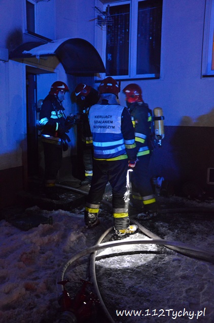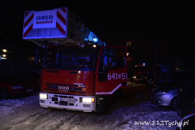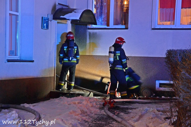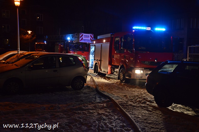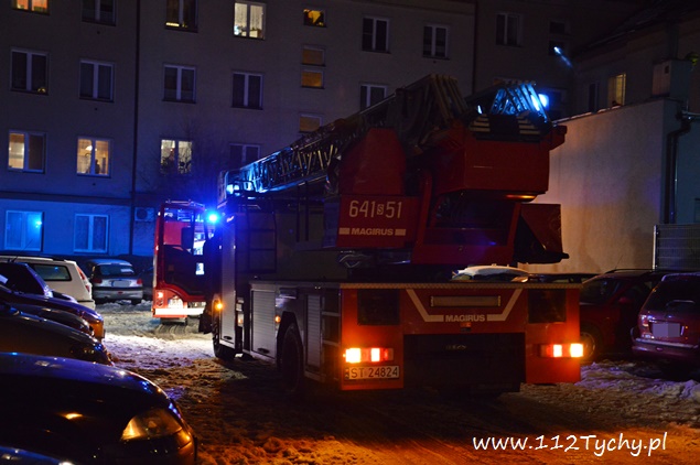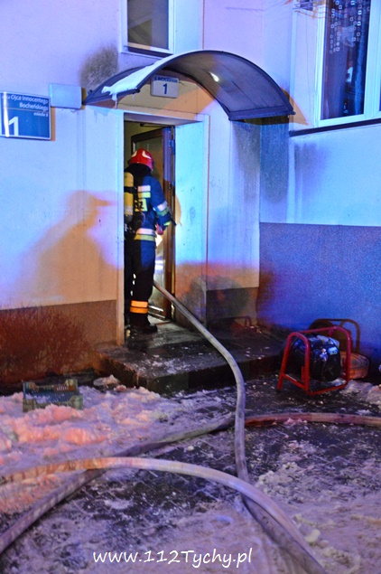 15 stycznia około godziny 17.55 do MSK w Tychach wpłynęło zgłoszenie o dużym zadymieniu na klatce schodowej w budynku wielorodzinnym przy ulicy Bocheńskiego 1. Na miejsce zadysponowany został pluton gaśniczy JRG Tychy (GBA, GCBA, GCBARt, SD) i patrol Policji. Zastępy dotarły na miejsce po kilku minutach z utrudnieniami (zaparkowane pojazdy na drodze dojazdowej – szlaban na wjeździe). Po rozpoznaniu sytuacji okazało się, że przyczyną zadymienia jest pożar gazet i śmieci w piwnicy budynku. Ze względu na duże zadymienie strażacy pracowali w AOUO (aparatu ochrony układu oddechowego). Po kilkunastu minutach pożar został ugaszony. Pomieszczenia piwniczne zostały dokładnie sprawdzone, a następnie piwnice jak i klatka schodowa zostały przewietrzone i oddymione przy użyciu agregatów oddymiających (tzw. Tempestów). Działania na miejscu trwały blisko półtorej godziny. Prawdopodobną przyczyną pożaru było podpalenie. Tyscy policjanci prowadzą dalsze czynności w tej sprawie.